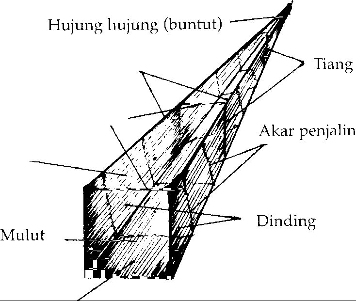 - Batang pelepah kumbar (salak) atau pelepah rumbia iu. Sedikit tali pengikat