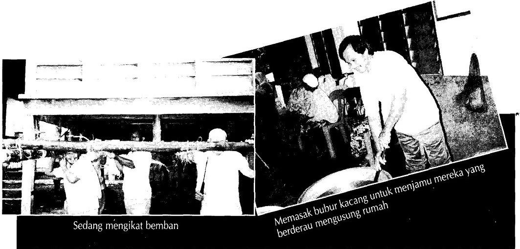 Tidak kurang juga yang menanggalkan topi kerana tersangkut pada rasuk rumah. Yang tidak memakai kasut but, sesetengahnya tercabut dari kakinya akibat terpijak kaki kawan.