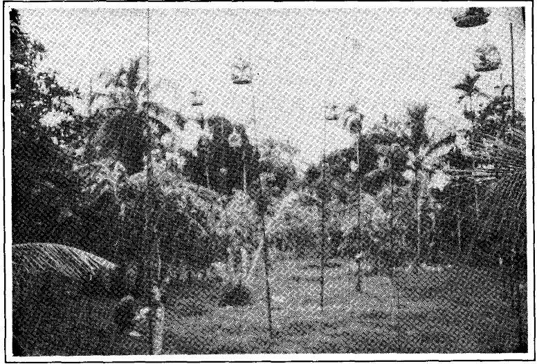 Beratus tiang atau pancang dipacak berjajar-jajaran di suatu kawasan seluas kira-kira satu ekar. Sangkar-sangkar burung yang berukiran indah bergantungan di puncak tiang.