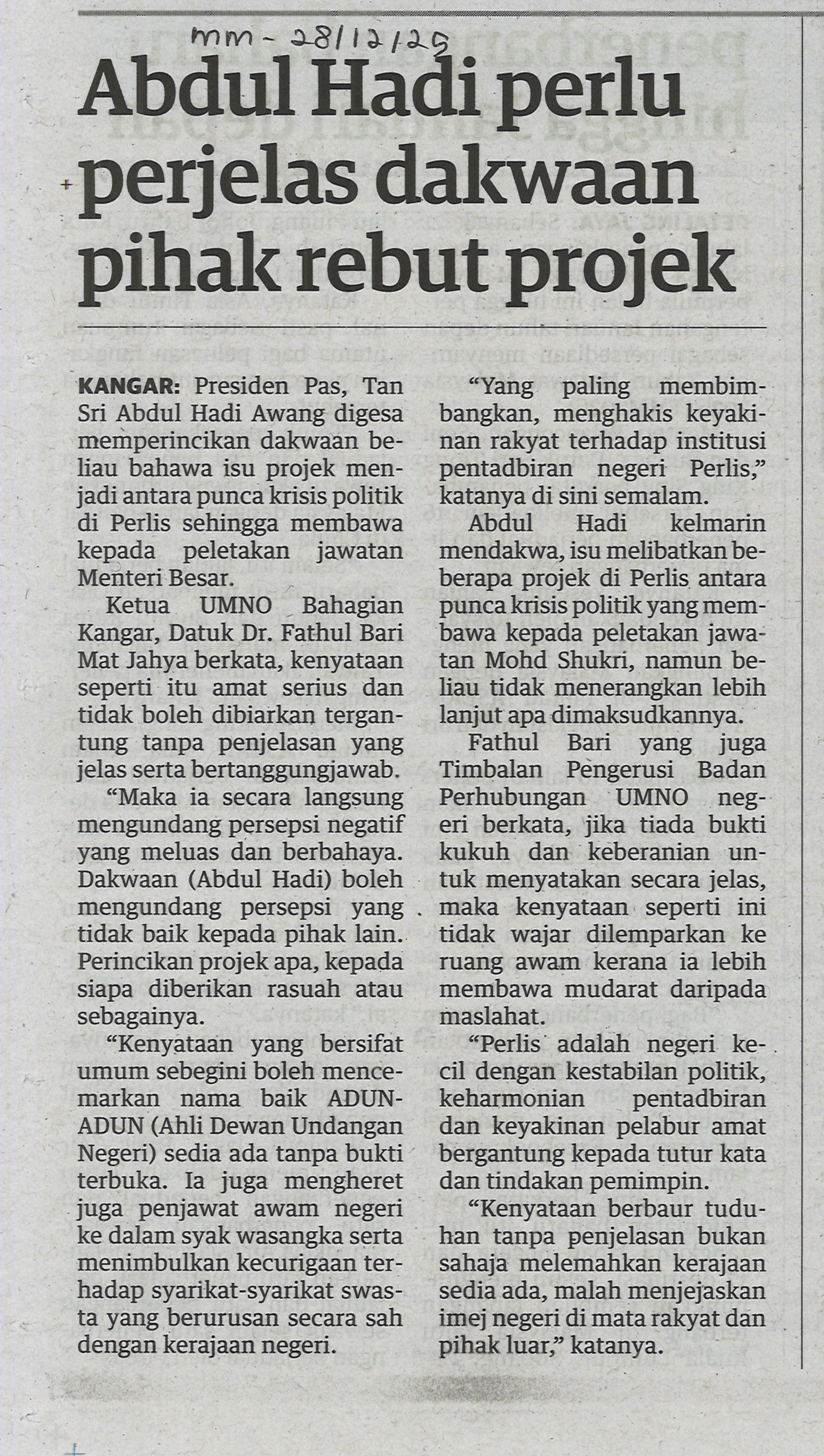 Abdul Hadi perlu perjelas dakwaan pihak rebut projek