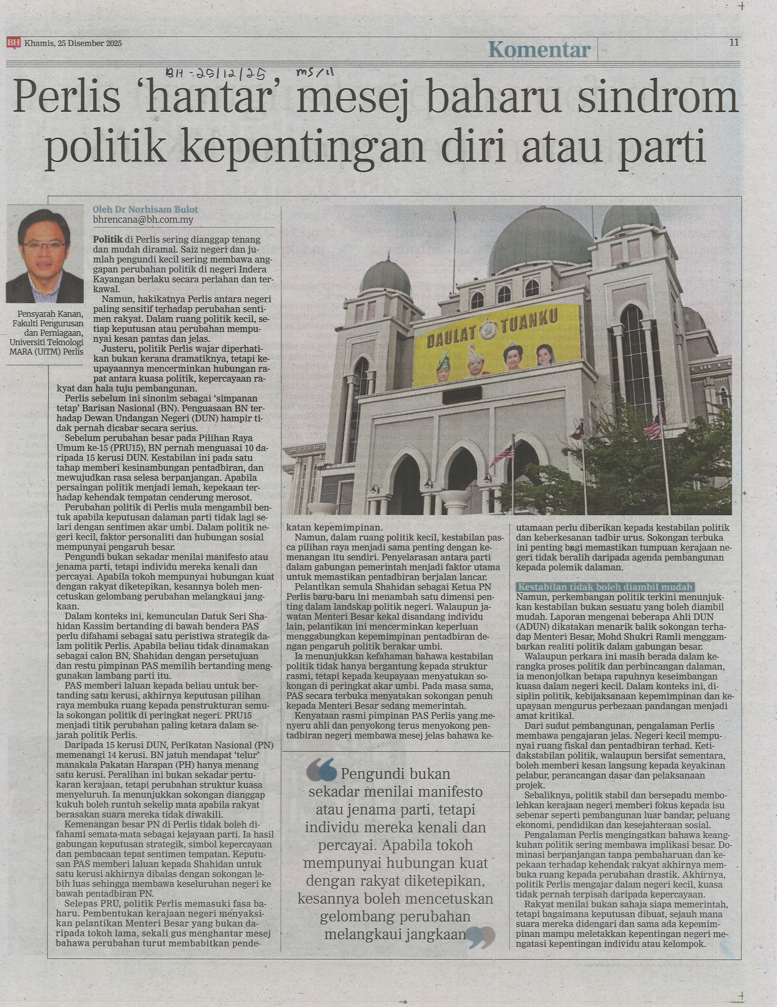 Perlis 'hantar' mesej baharu sindrom politik kepentingan diri atau parti