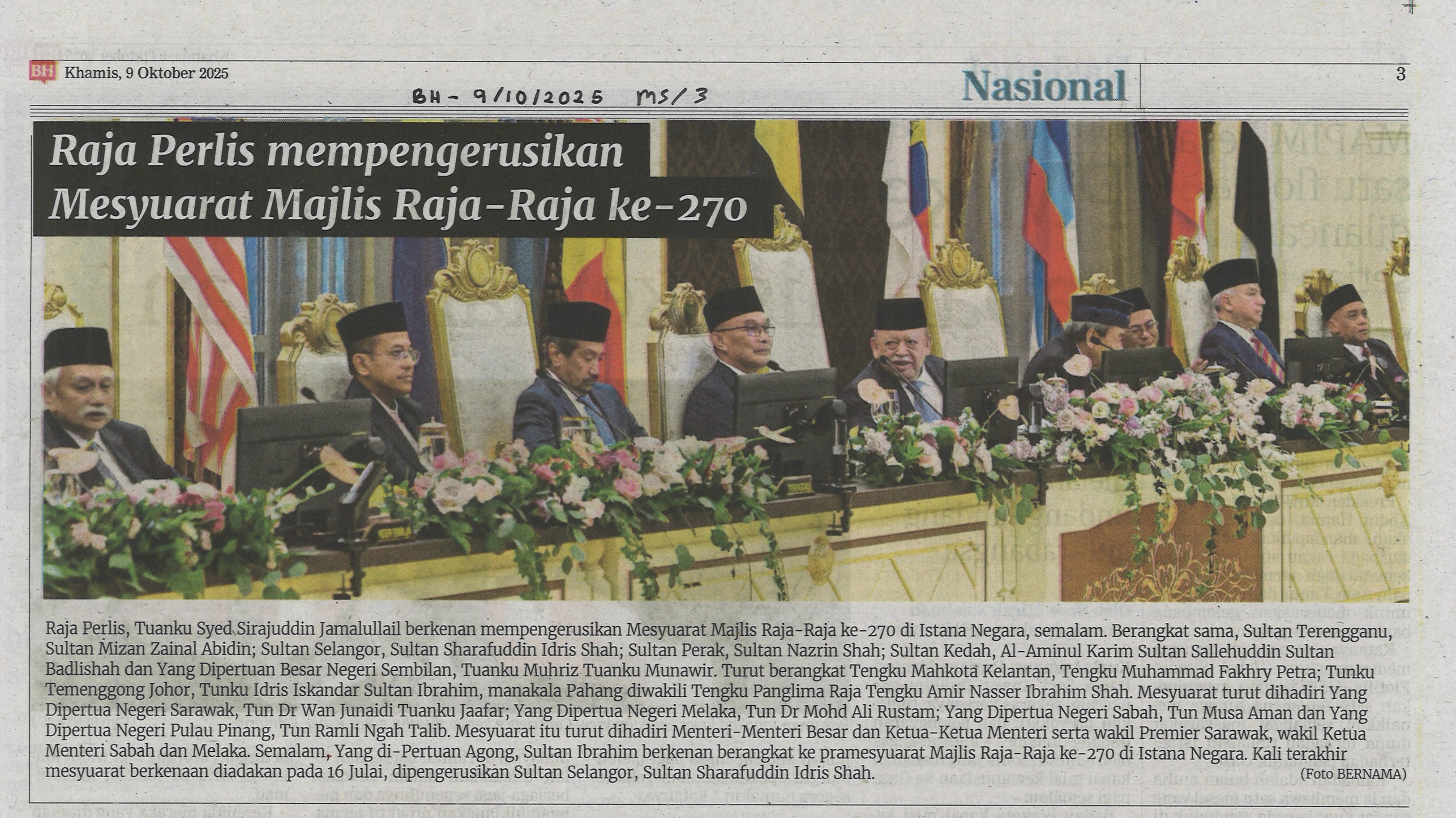 Raja Perlis mempengerusikan mesyuarat Majlis Raja-Raja ke-270
