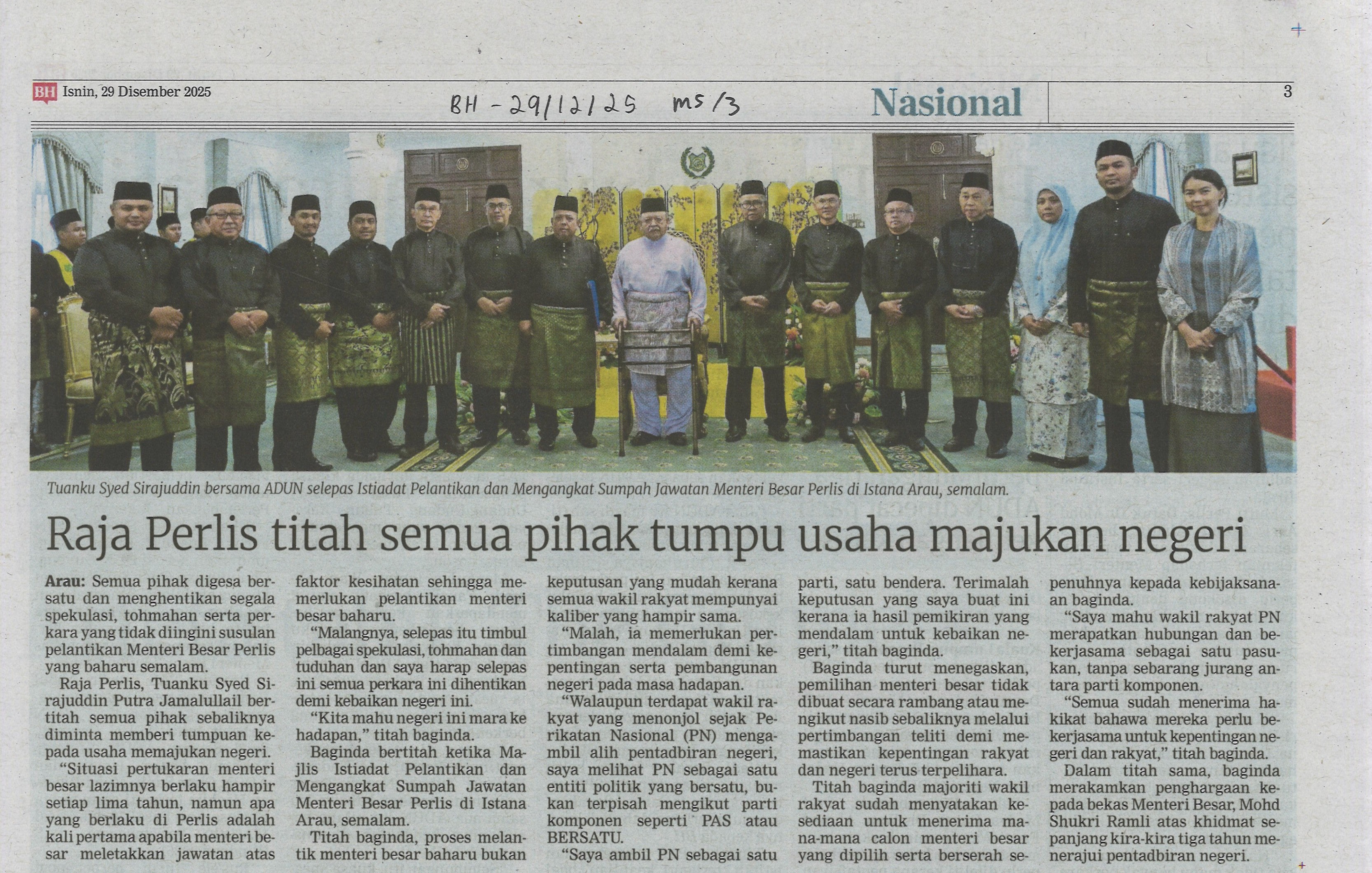 Raja Perlis titah semua pihak tumpu usaha majukan negeri
