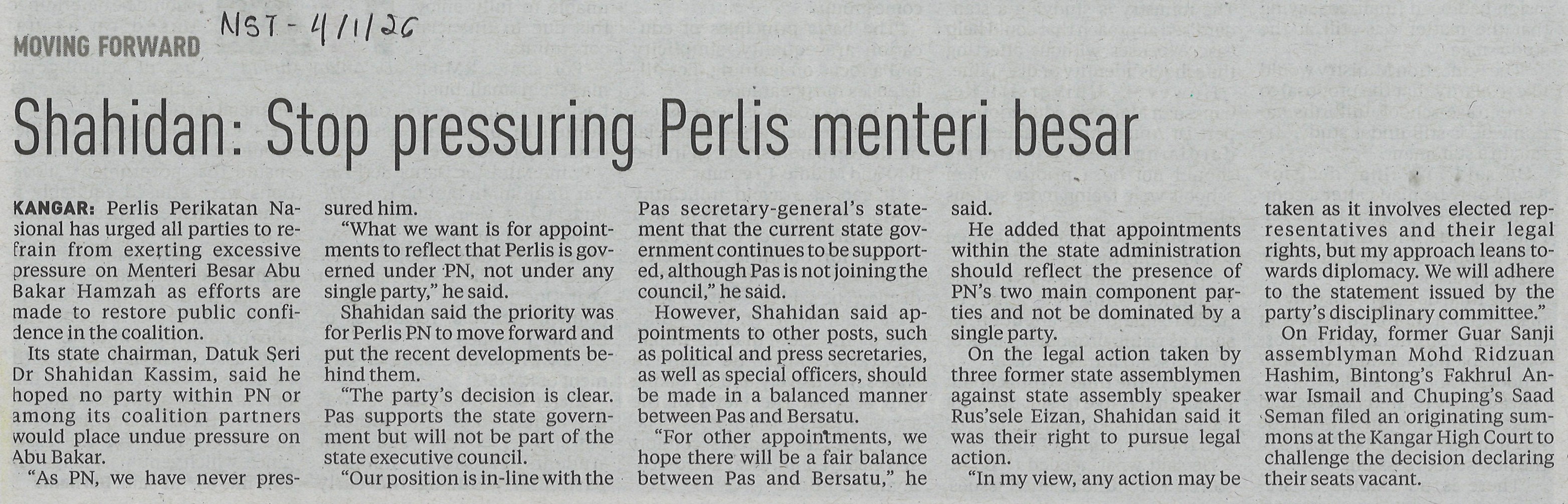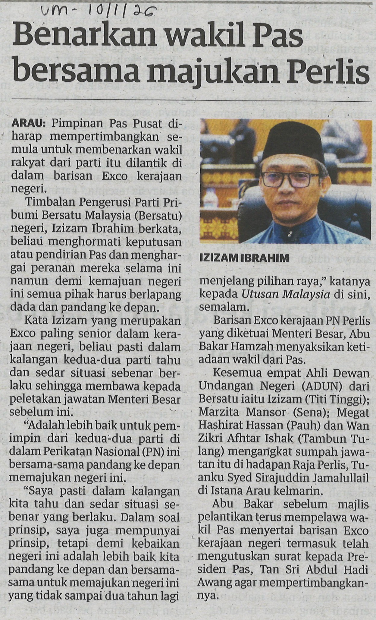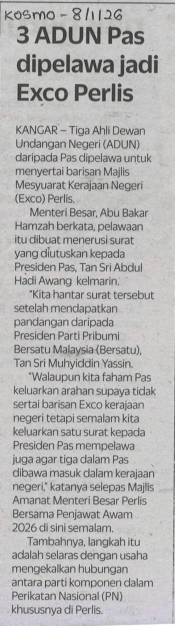 3 ADUN Pas dipelawa jadi Exco Perlis
