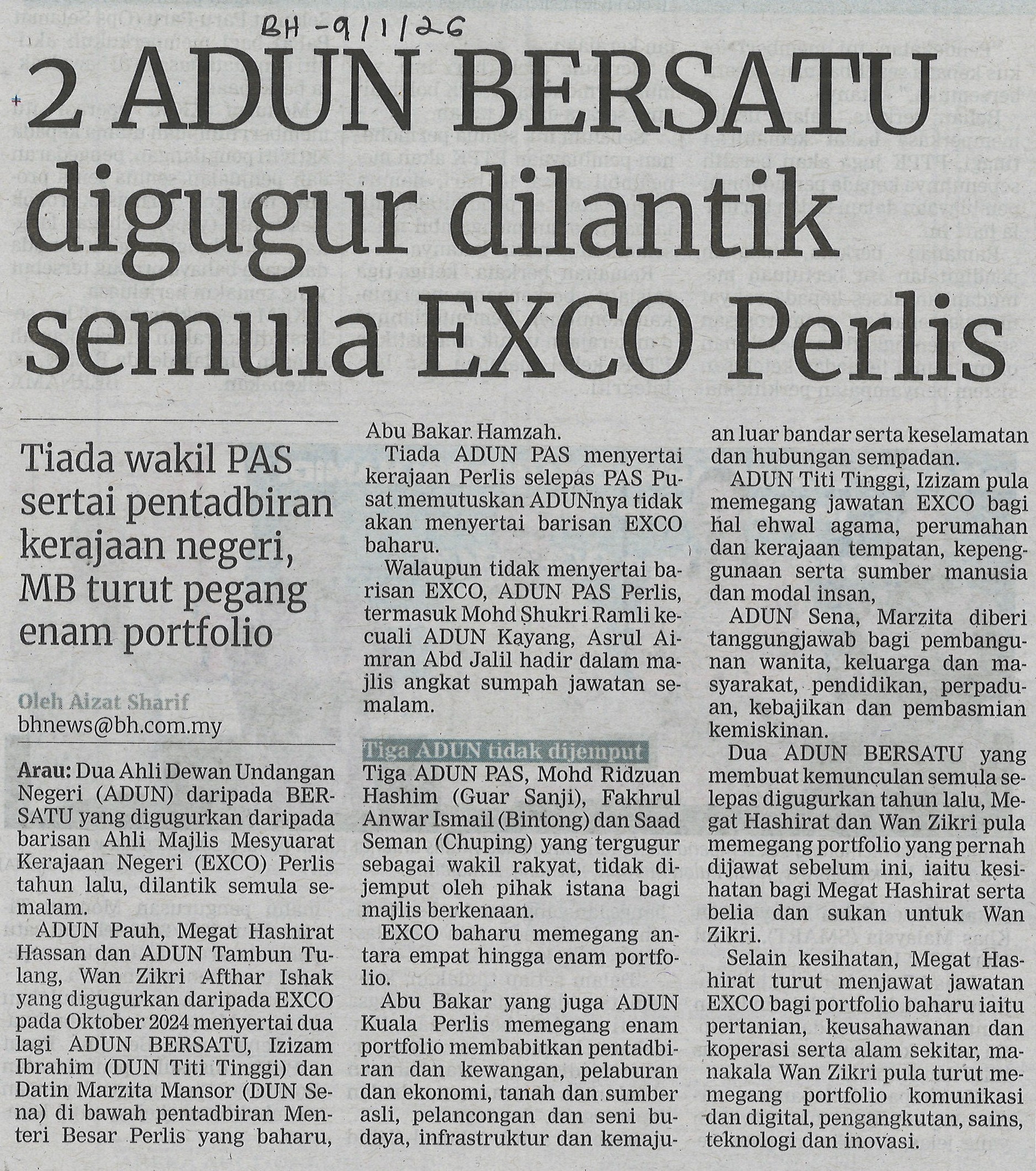 2 ADUN BERSATU digugur dilantik semula EXCO Perlis