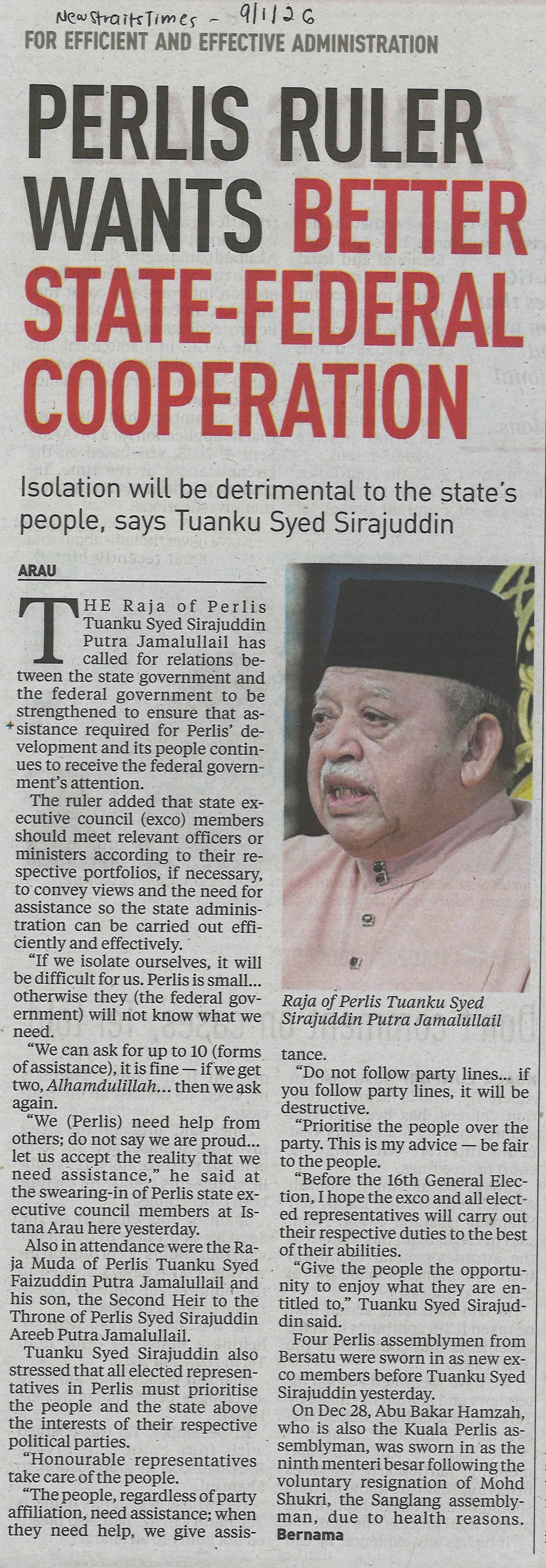 PERLIS RULER WANTS BETTER STATE-FEDERAL COOPERATION