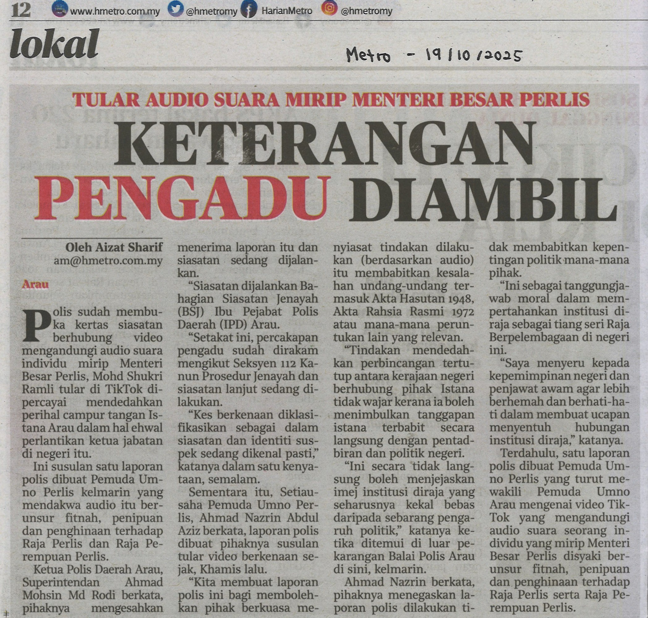 TULAR AUDIO SUARA MIRIP MENTERI BESAR PERLIS KETERANGAN PENGADU DIAMBIL