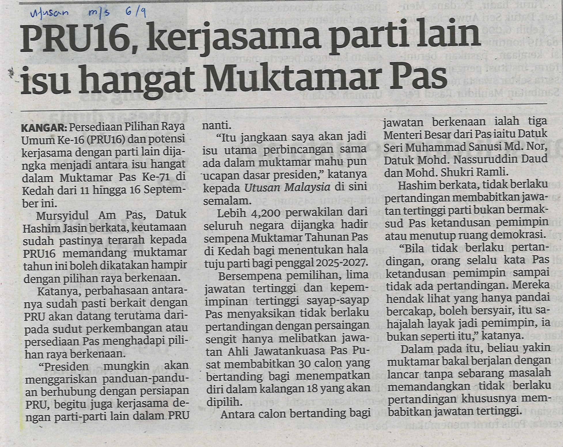 PRU16, kerjasama parti lain isu hangat Muktamar Pas