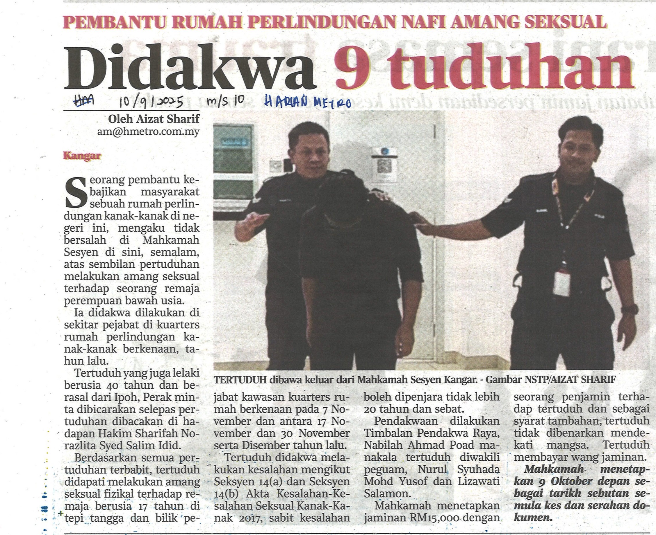 PEMBANTU RUMAH PERLINDUNGAN NAFI AMANG SEKSUAL- Didakwa 9 tuduhan