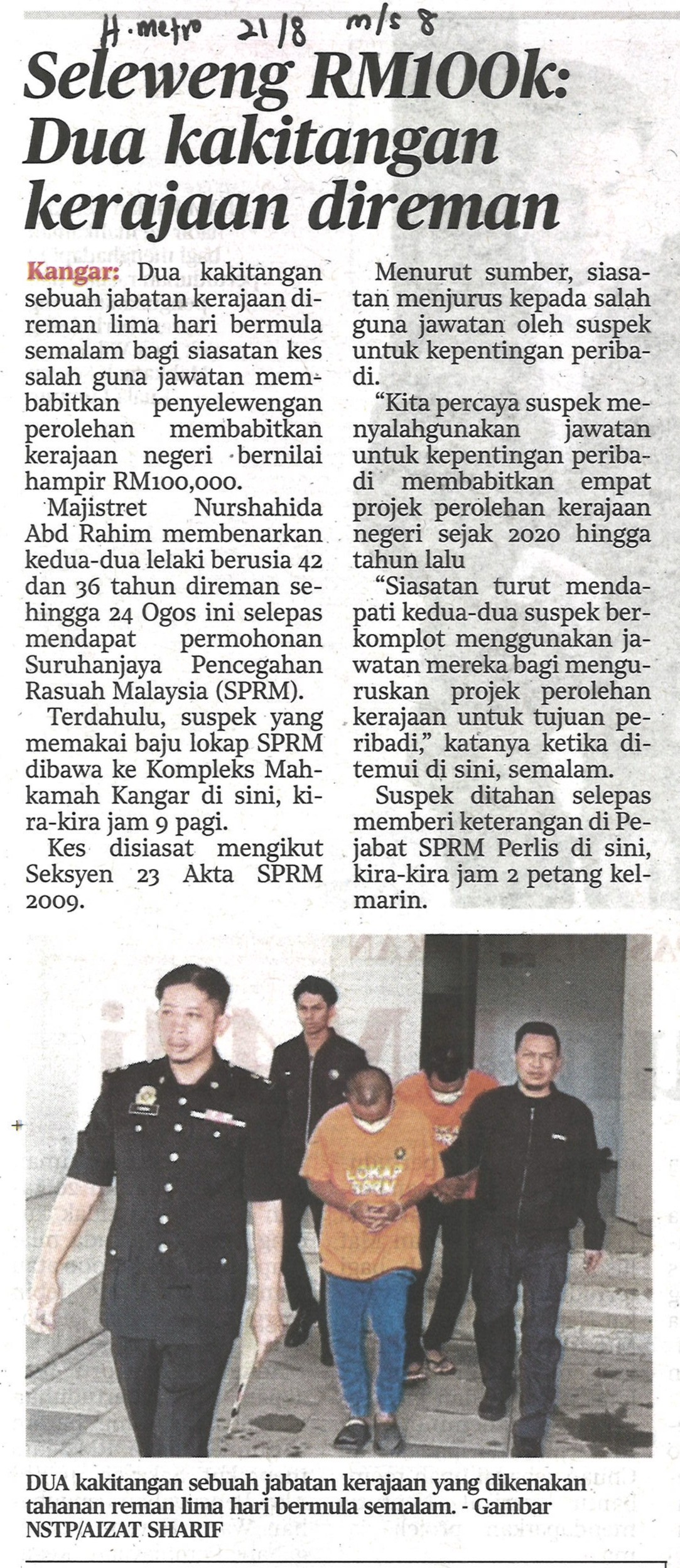 Seleweng RM100k: Dua kakitangan kerajaan direman