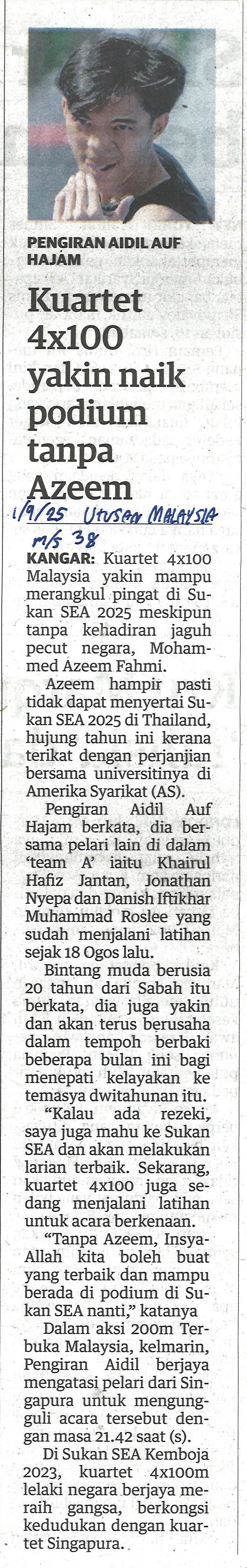 Kuartet 4x100 yakin naik podium tanpa Azeem