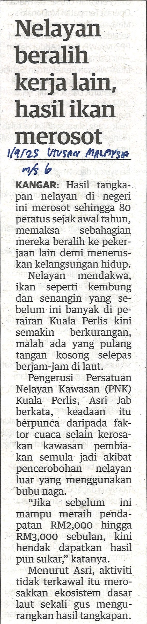 Nelayan beralih kerja lain, hasil ikan merosot