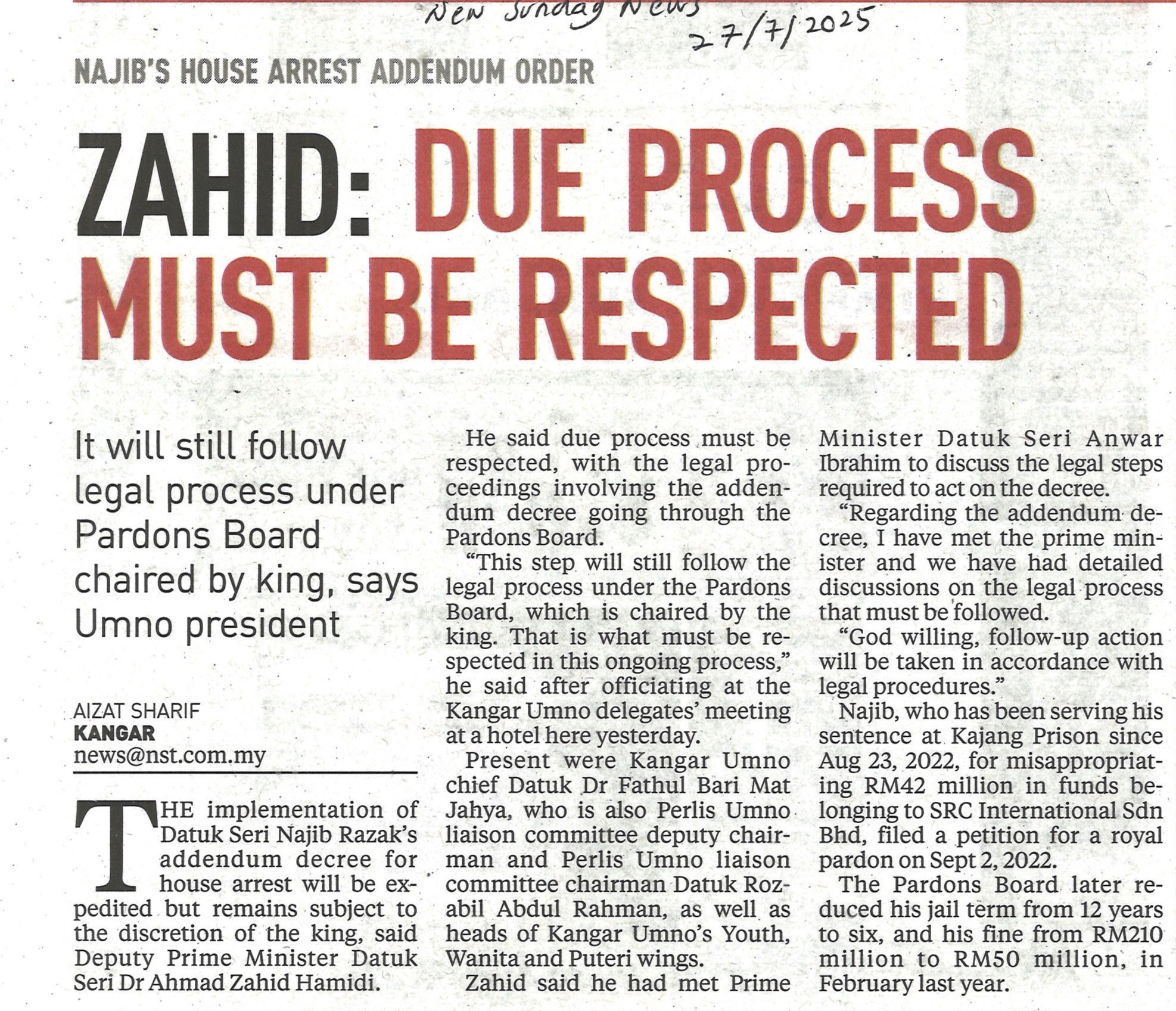 ZAHID: DUE PROCESS MUST BE RESPECTED