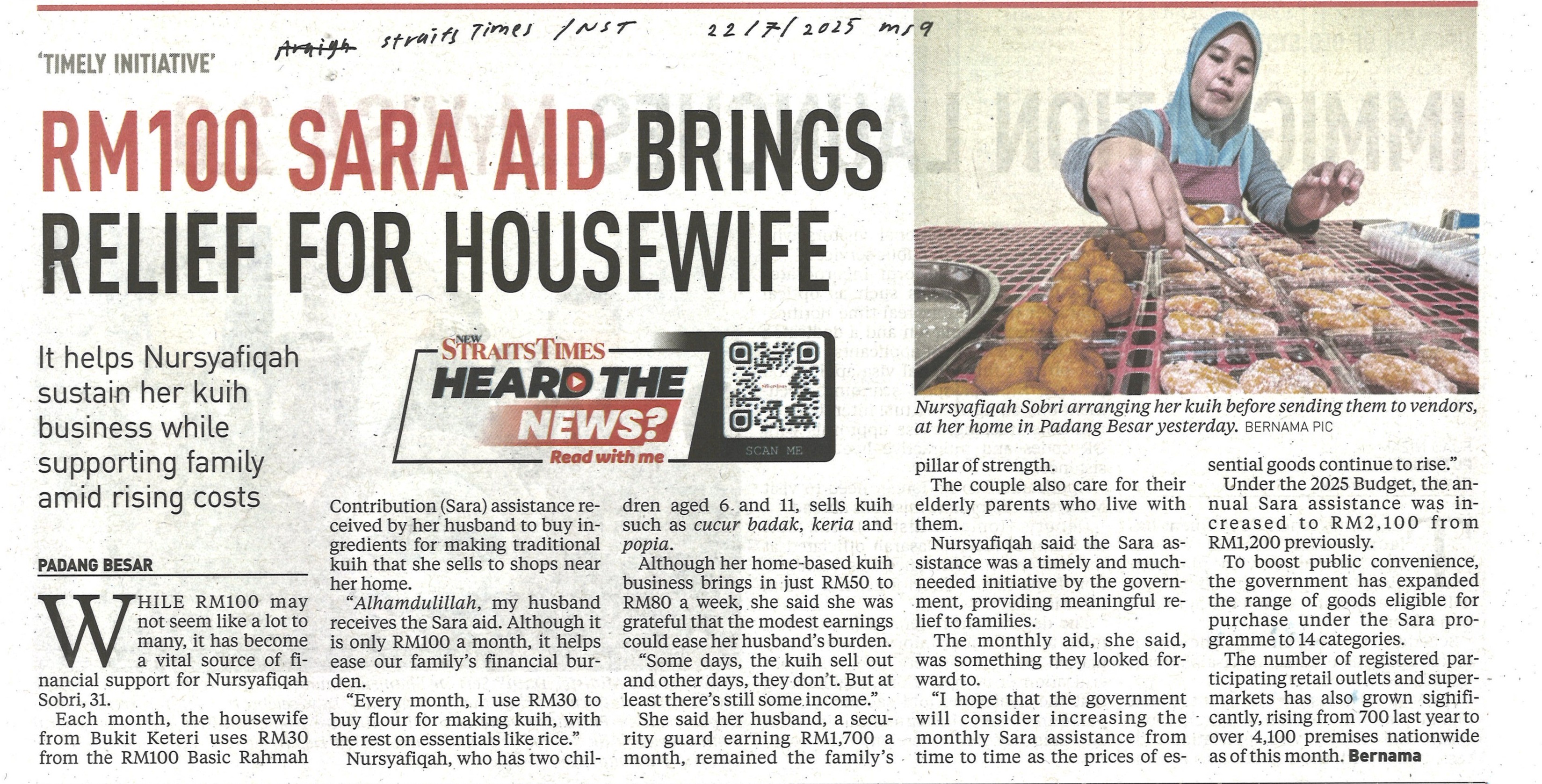 RM100 SARA AID BRINGS RELIEF FOR HOUSEWIFE