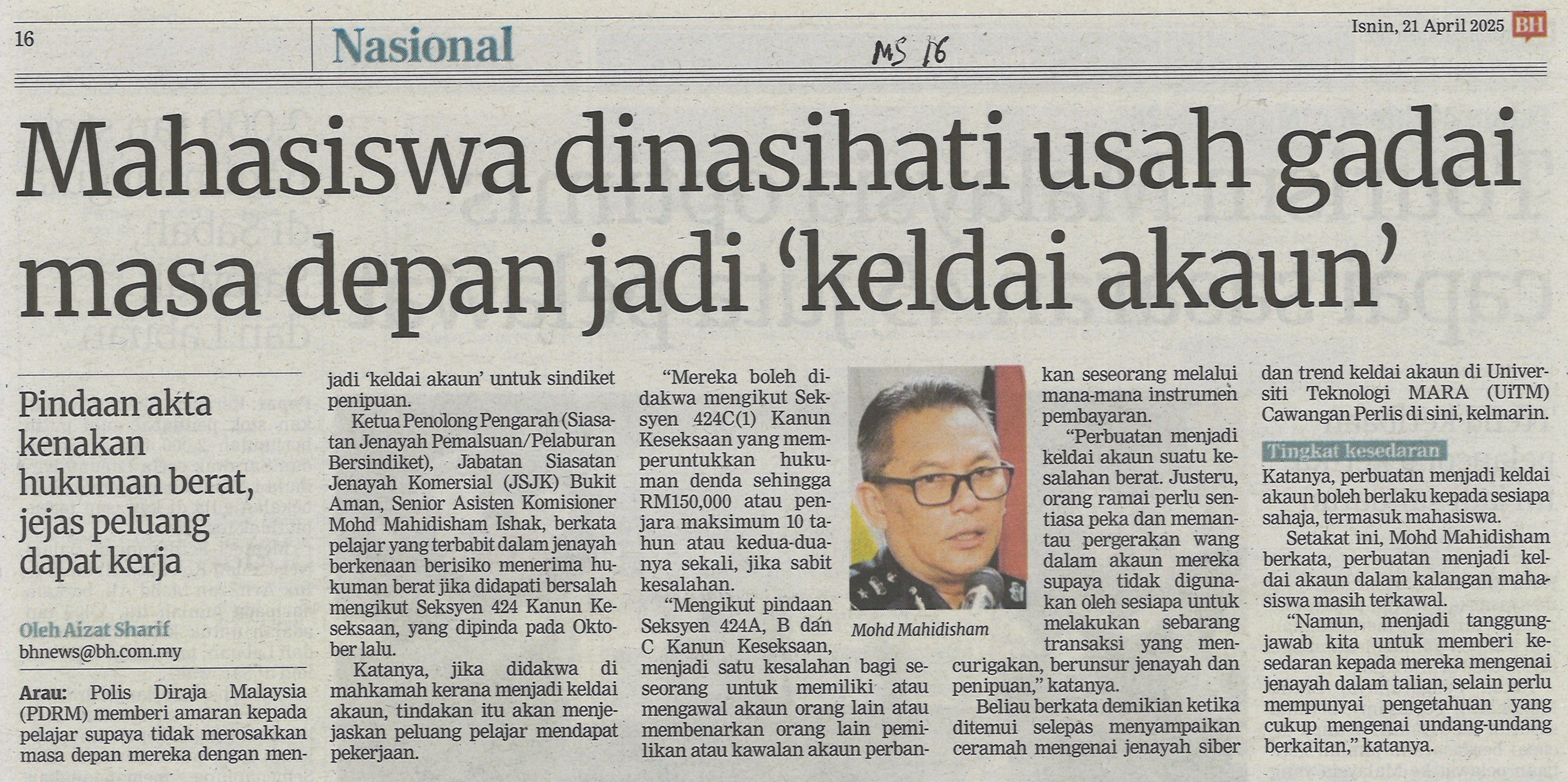 Mahasiswa dinasihati usah gadai masa depan jadi 'keldai akaun'