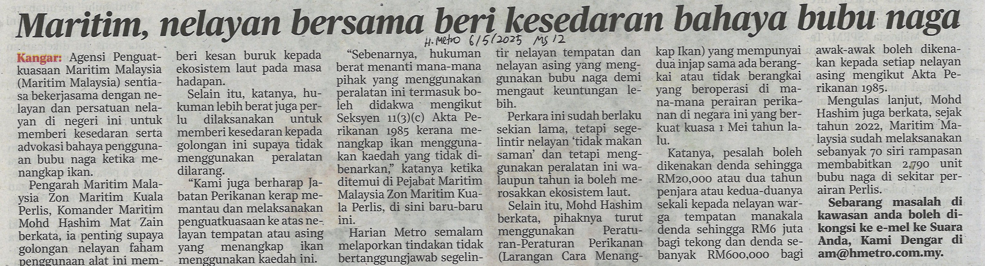 Maritim, nelayan bersama beri kesedaran bahaya bubu naga