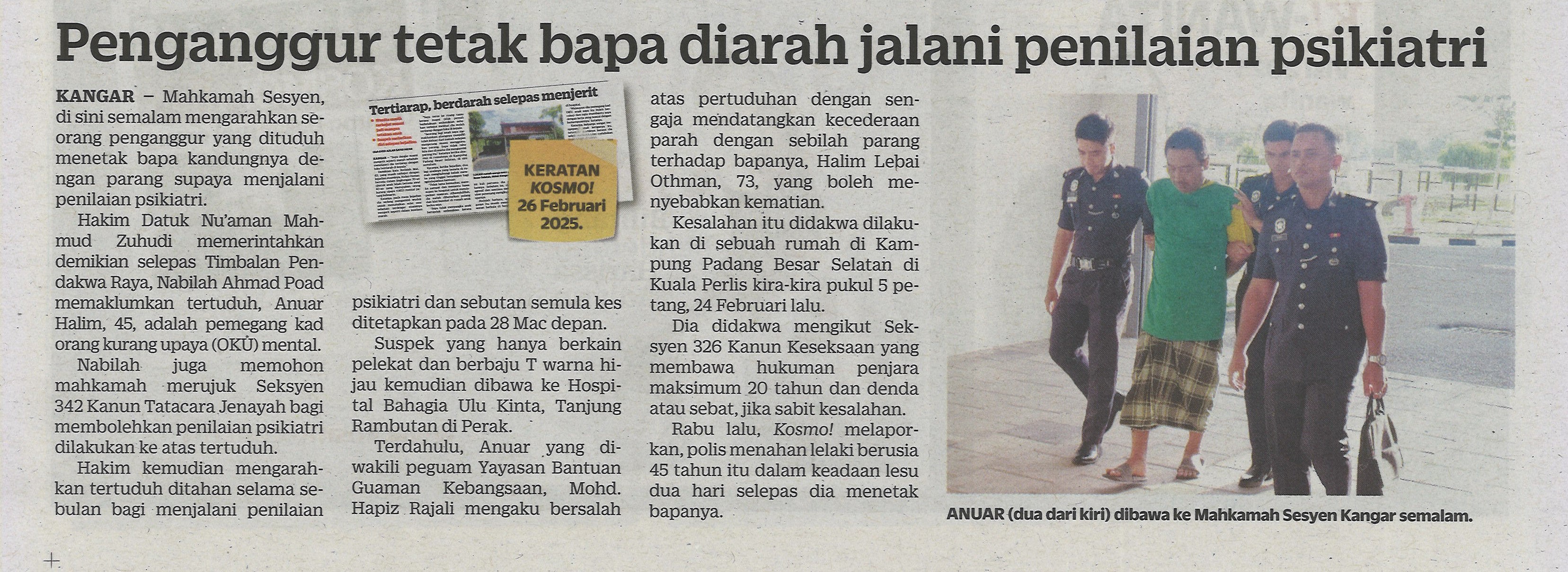 Peganggur tetak bapa diarah jalani penilaian psikiatri