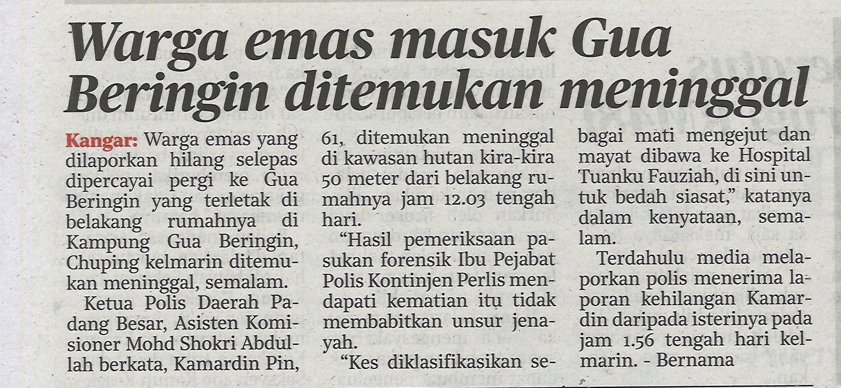 Warga emas masuk Gua Beringin ditemukan meninggal