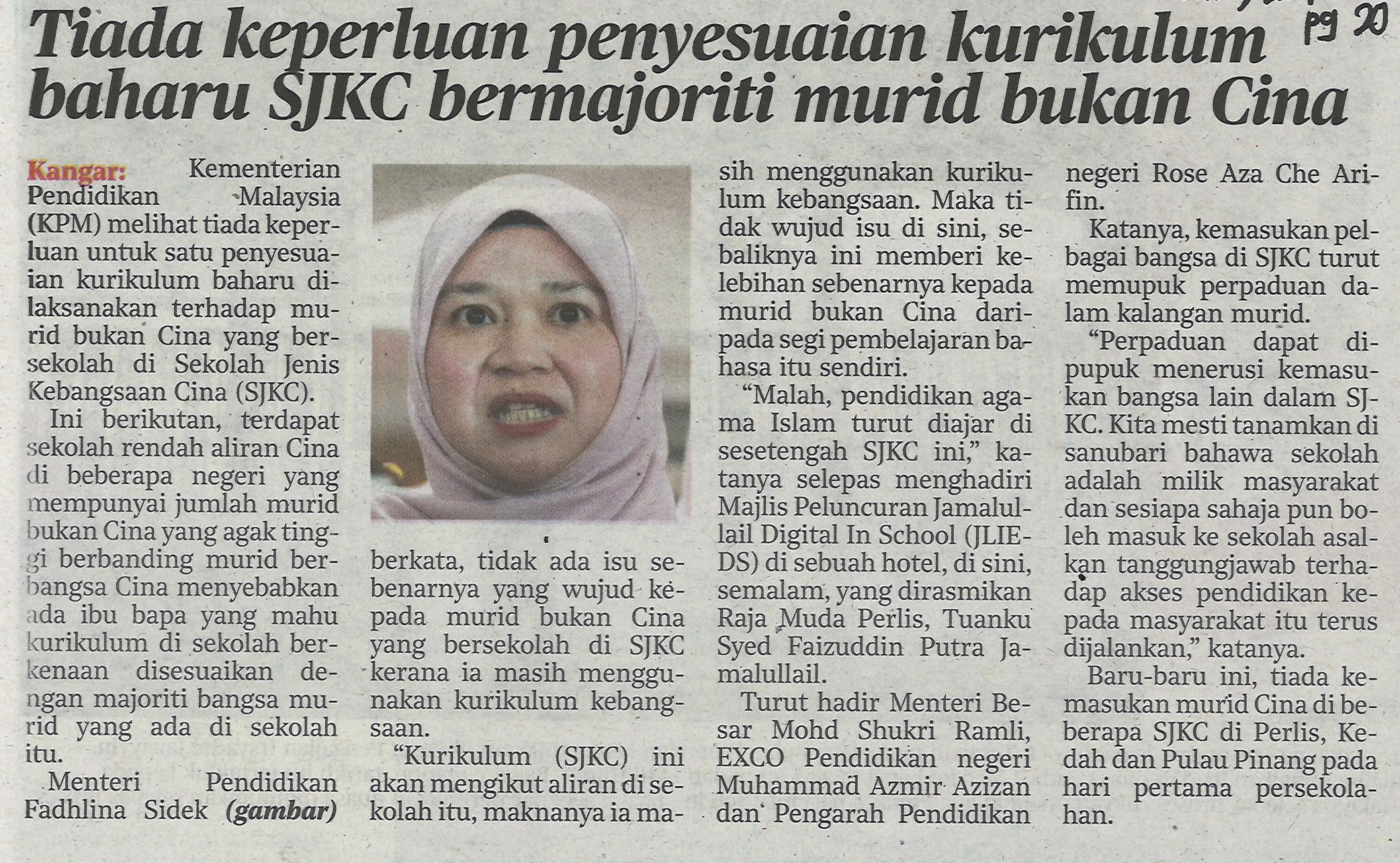 Tiada keperluan penyesuaian kurikulum baharu SJKC bermajoriti murid bukan Cina