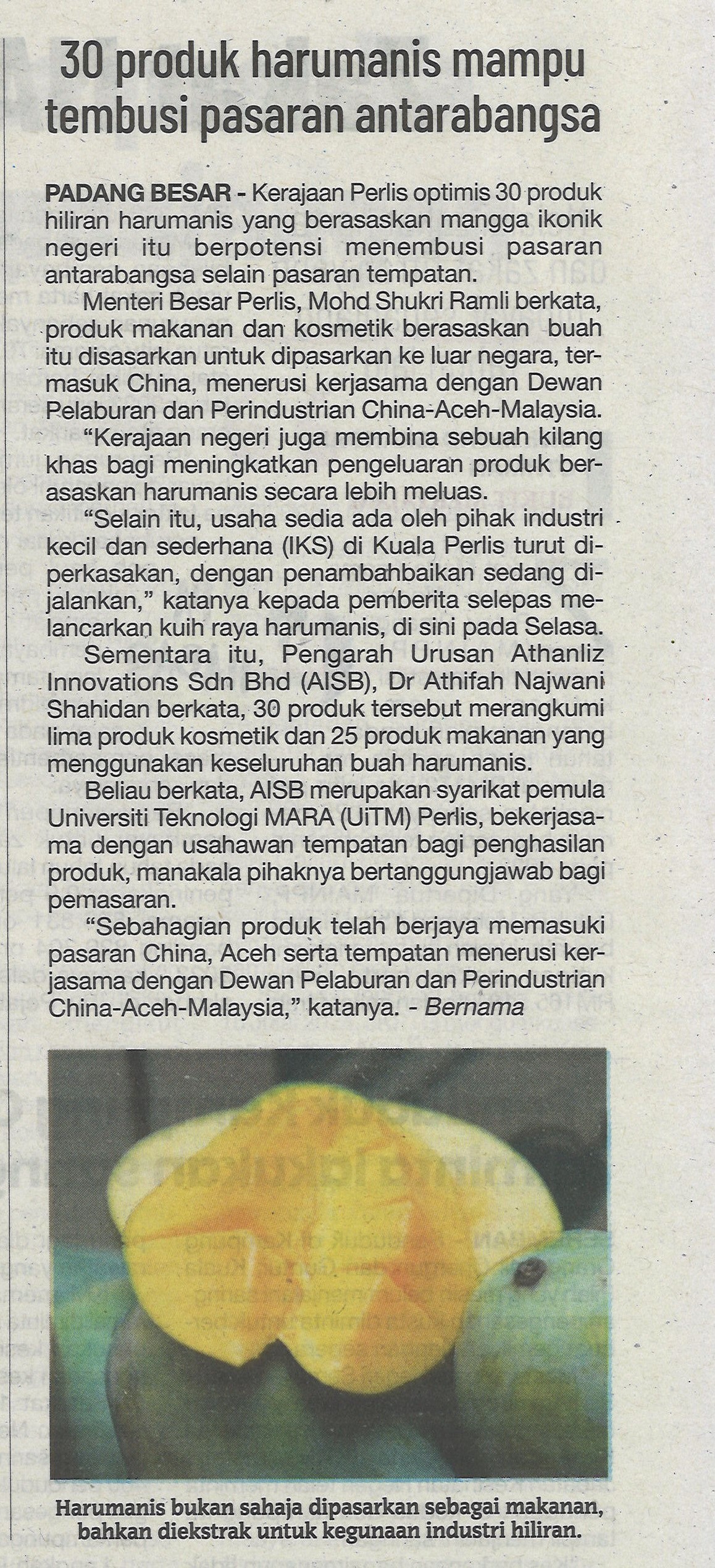 30 produk harumanis mampu tembusi pasaran antarabangsa
