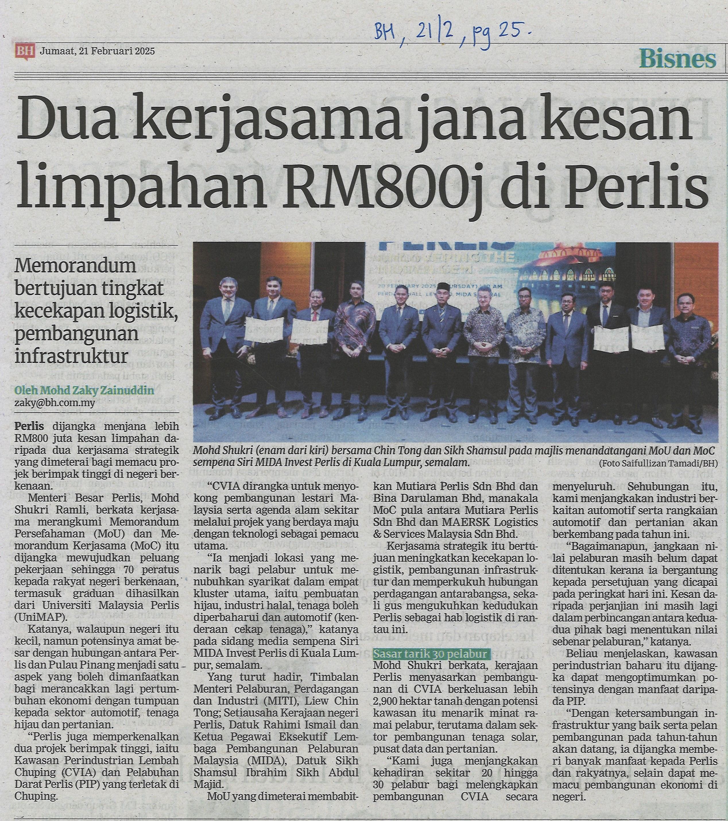 Dua kerjasama jana kesan limpahan RM800j di Perlis