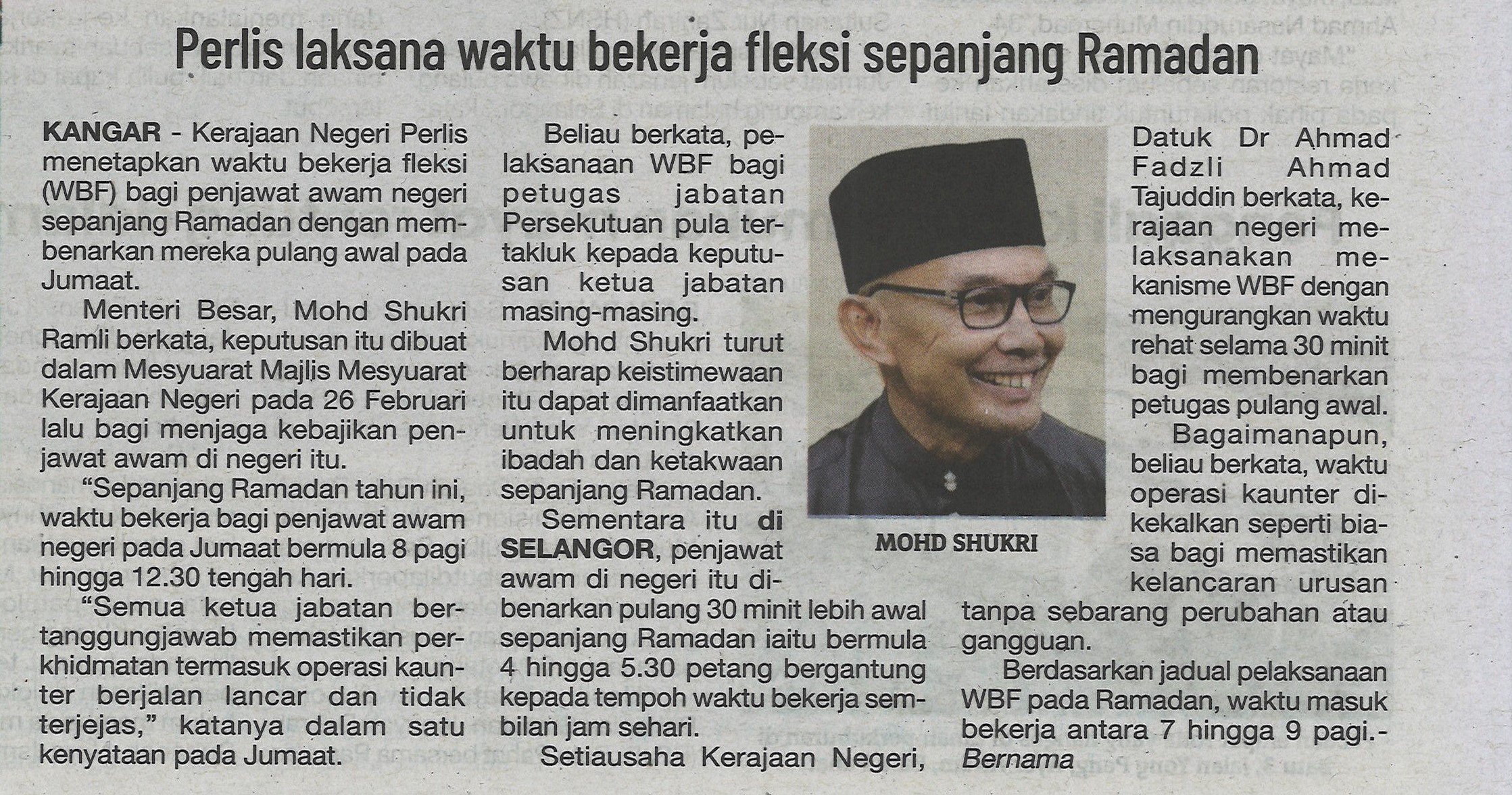 Perlis laksana waktu bekerja fleksi sepanjang Ramadan