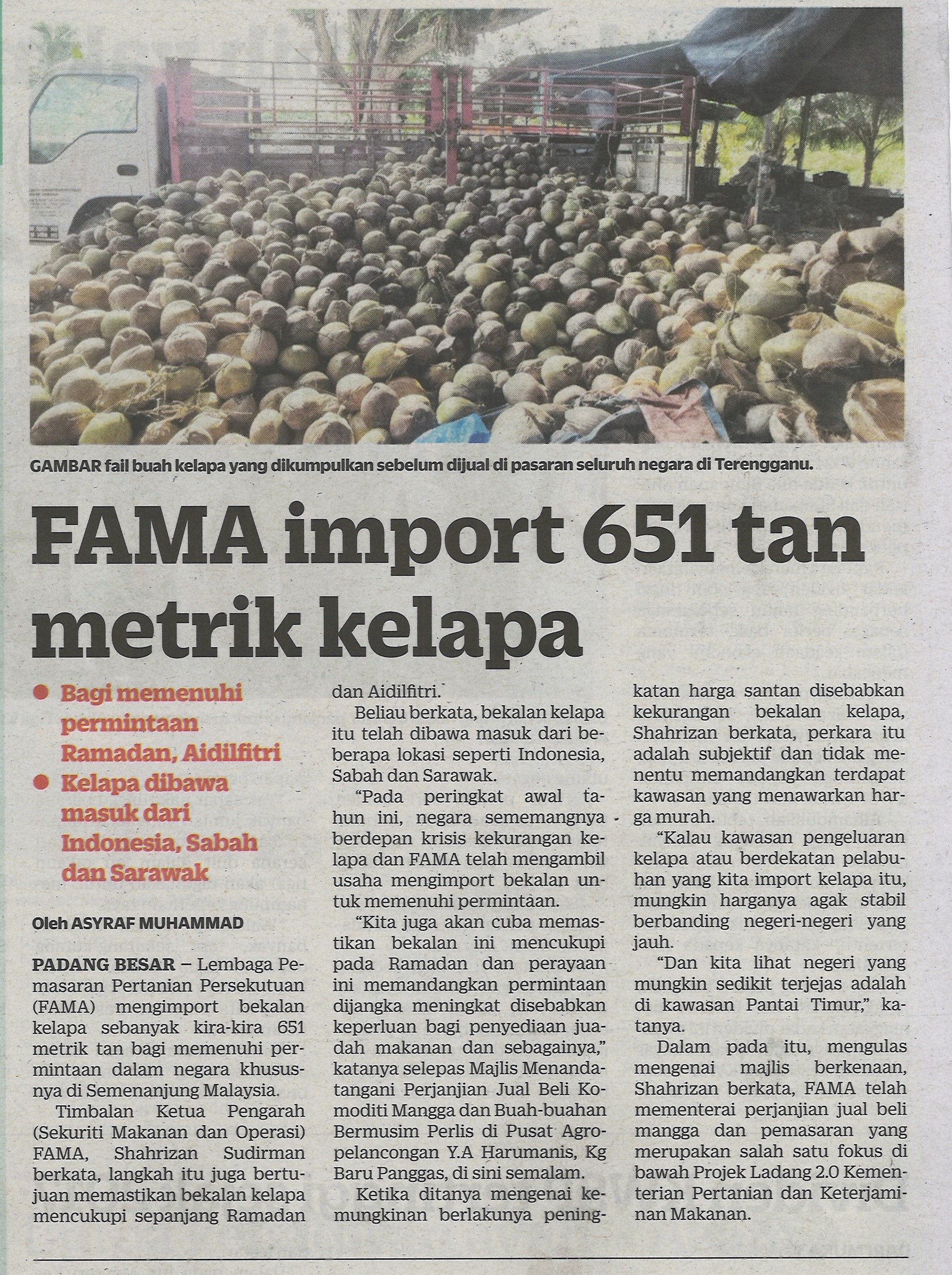 FAMA import 651 tan kelapa penuhi permintaan dalam negara
