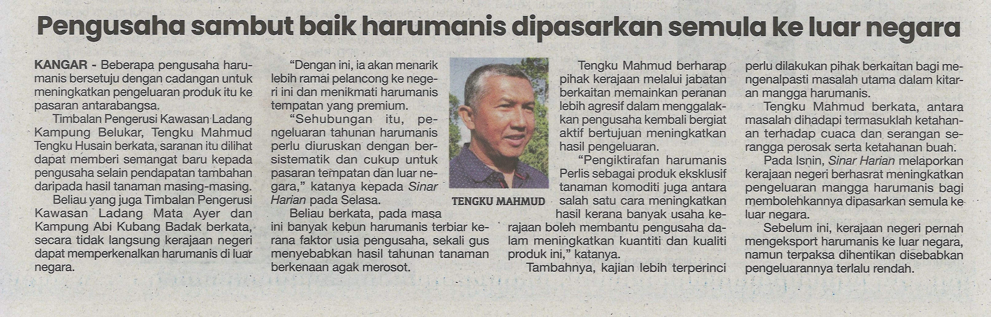 Pengusaha sambut baik harumanis dipasarkan semula ke luar negara