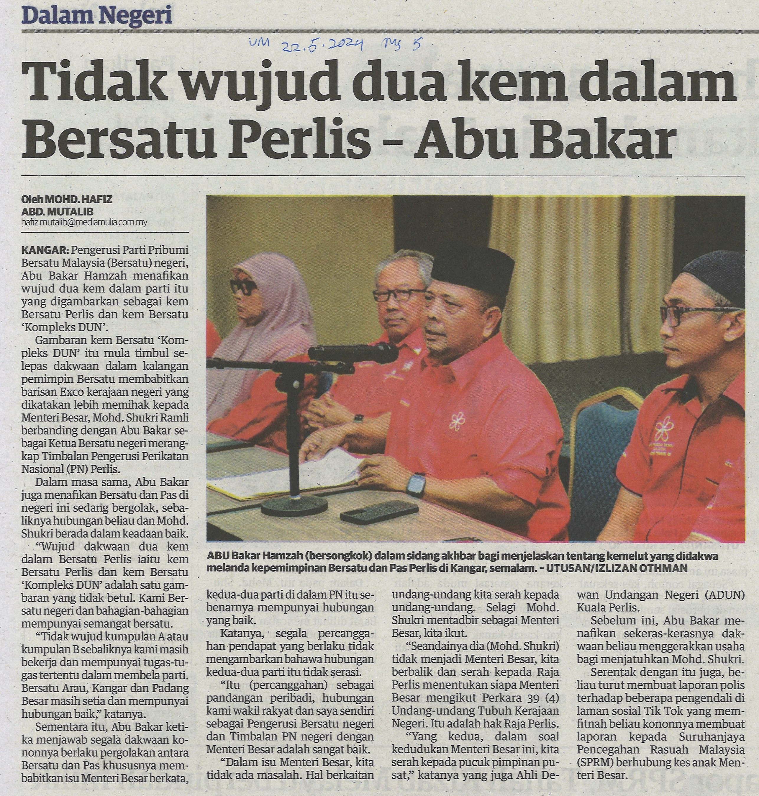 Tidak wujud dua kem dalam Bersatu Perlis - Abu Bakar