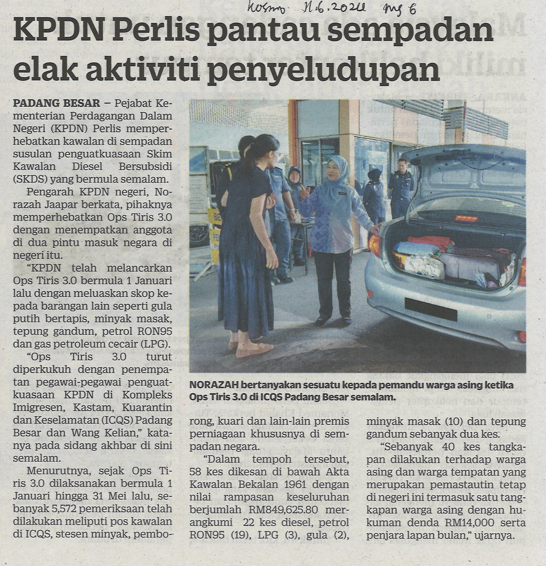 KPDN Perlis pantau sempadan elak aktiviti penyeludupan