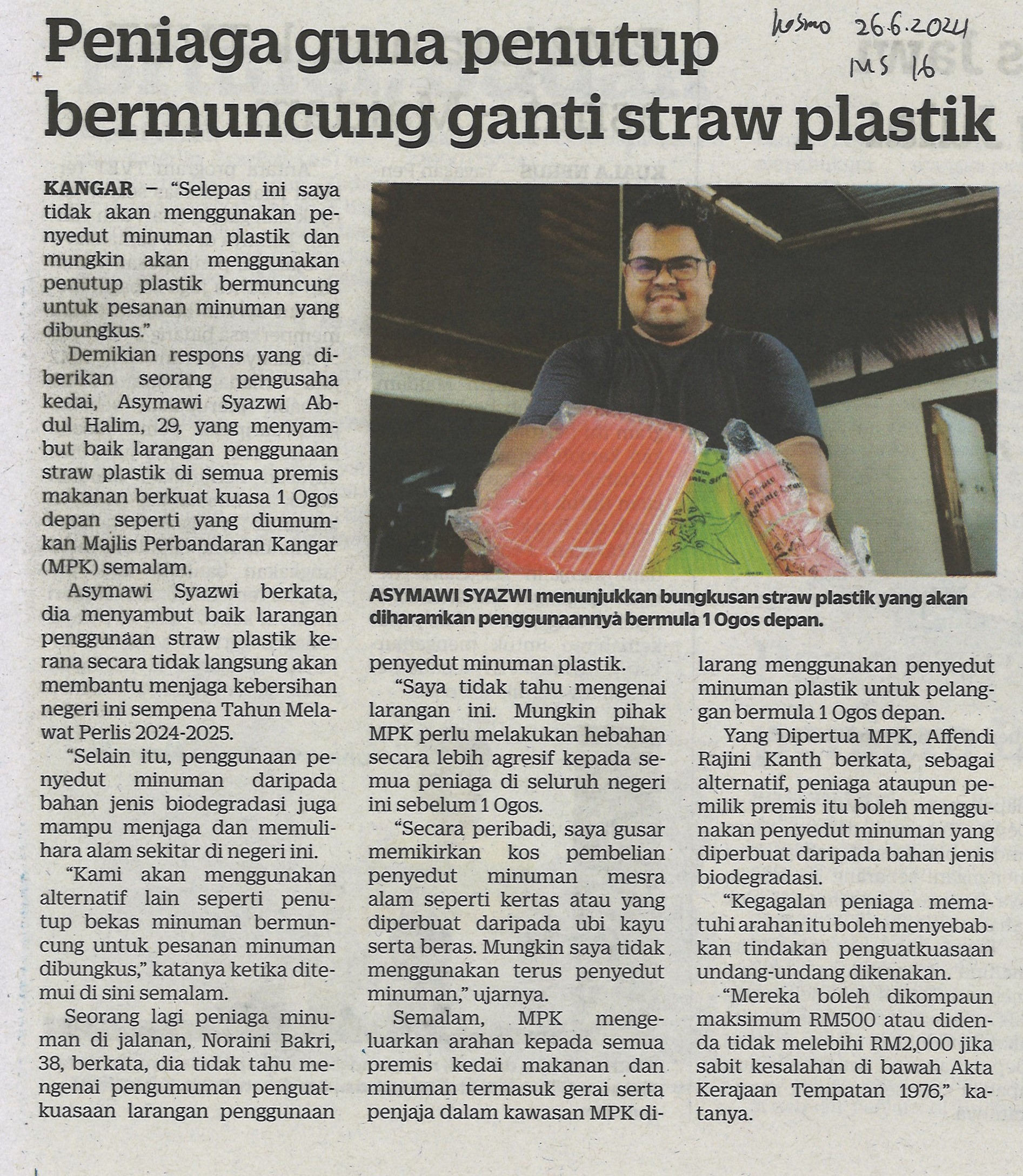 Peniaga guna penutup bermuncung ganti straw plastik