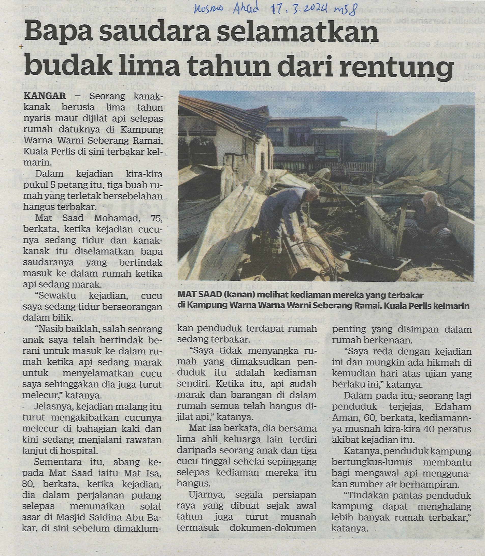 Bapa saudara selamatkan budak lima tahun dari rentung