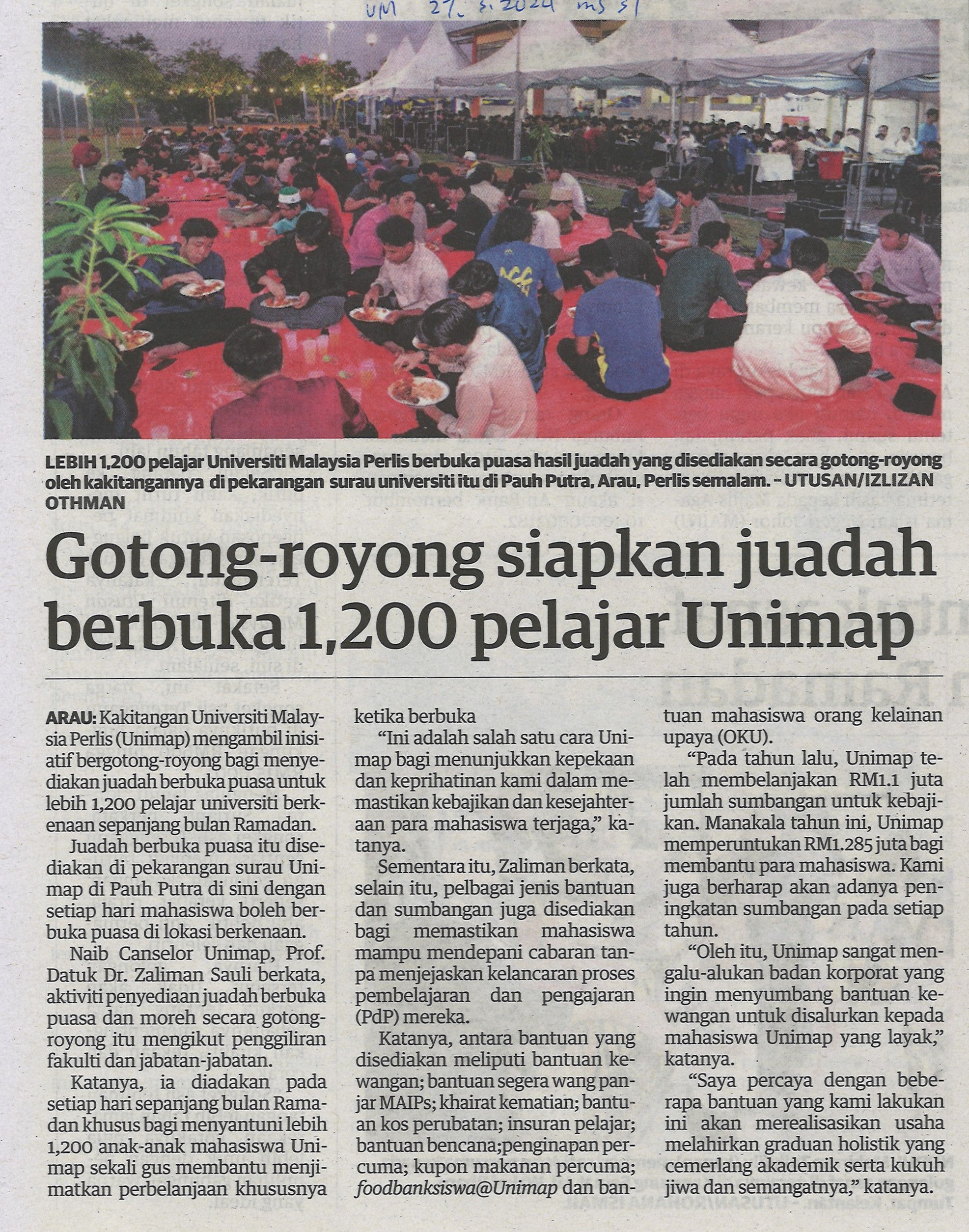 Gotong-royong siapkan juadah berbuka 1,200 pelajar Unimap