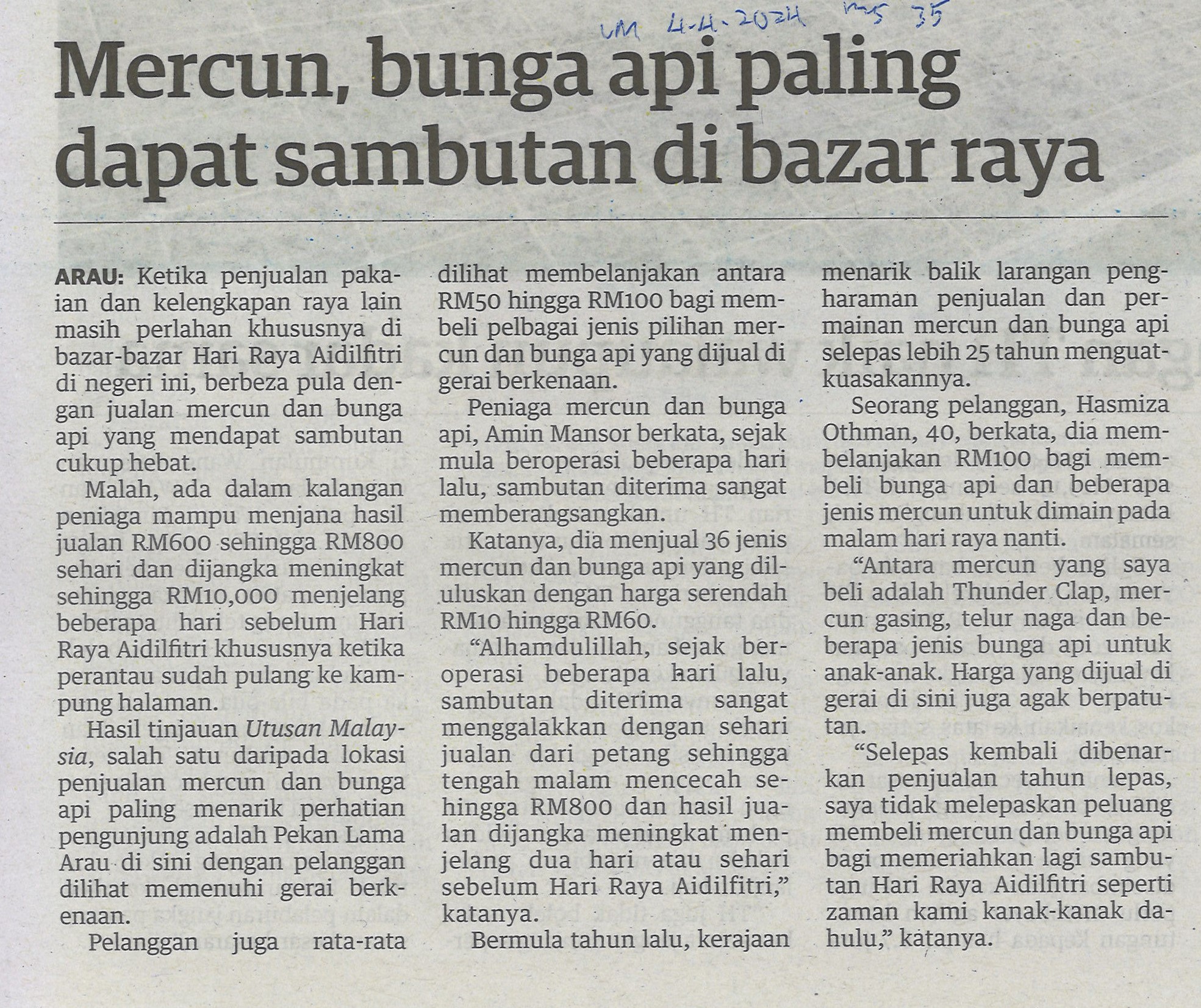 Mercun, bunga api paling dapat sambutan di bazar raya