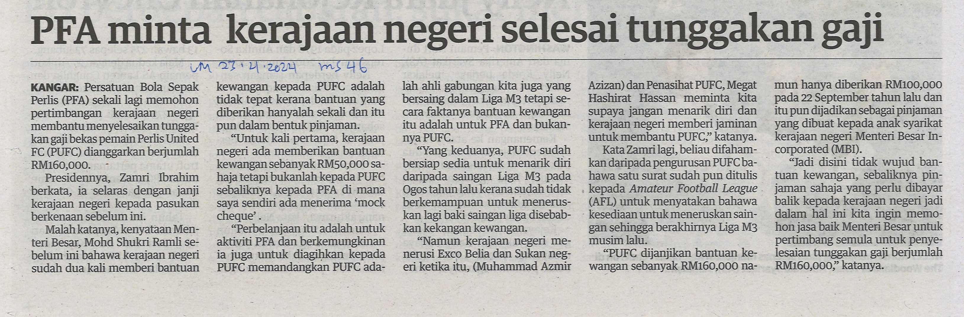 PFA minta kerajaan negeri selesai tunggakan gaji