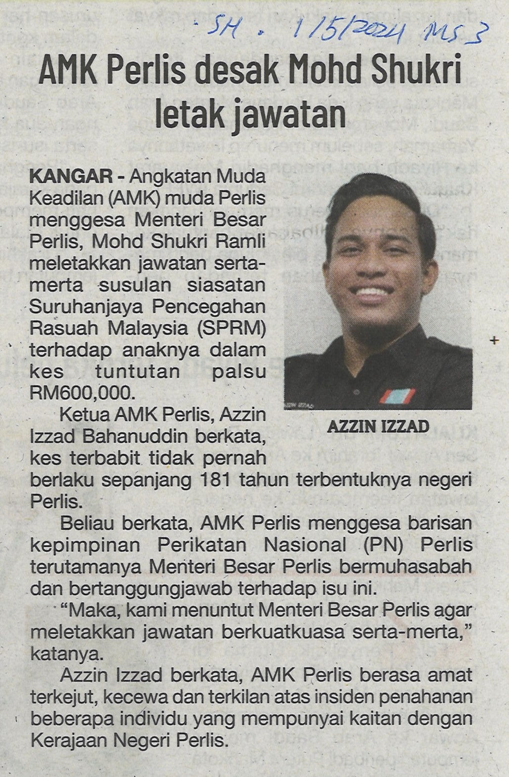 AMK Perlis desak Mohd Shukri letak jawatan