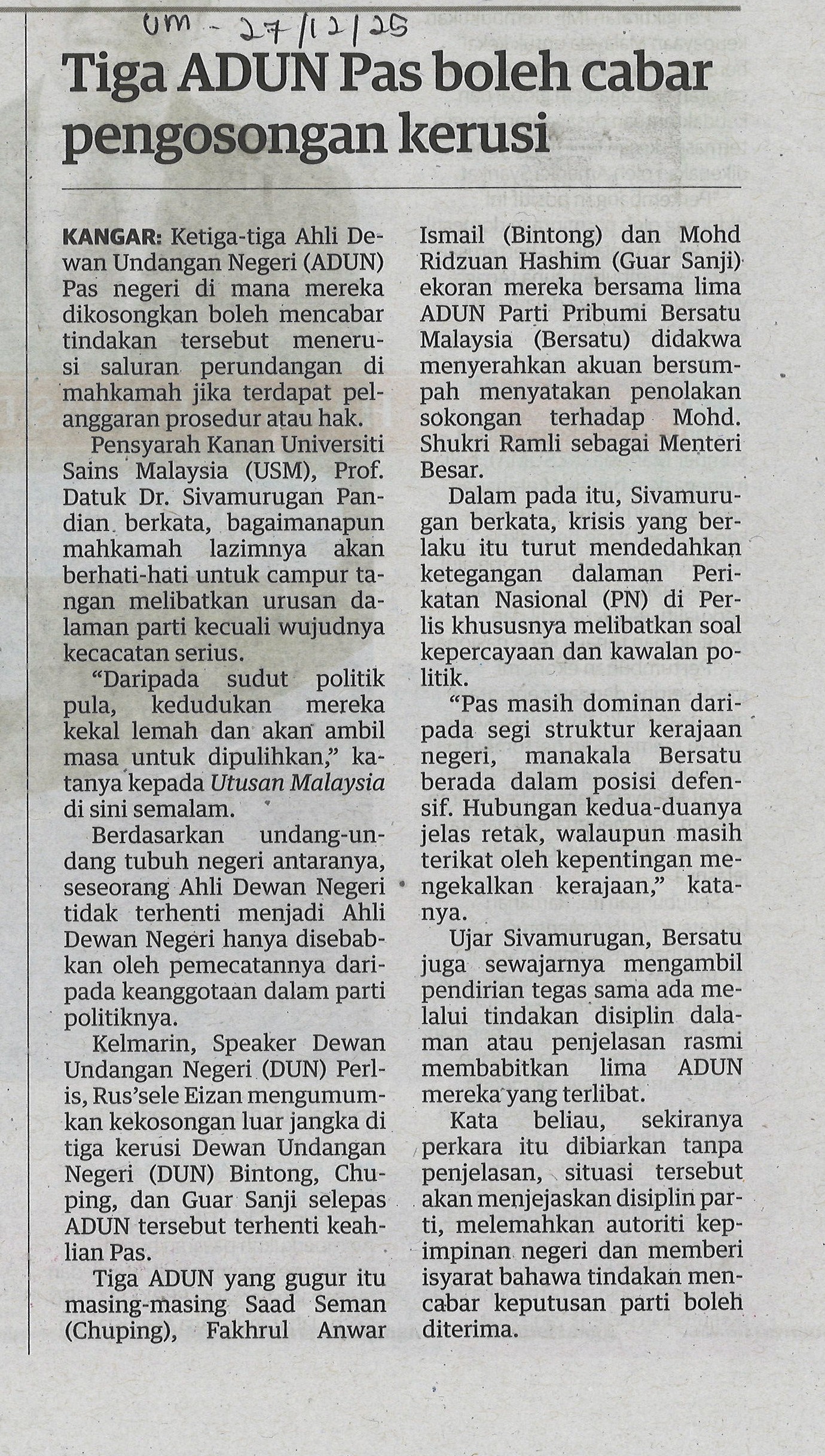 Tiga ADUN PAS cbar pengosongan kerusi