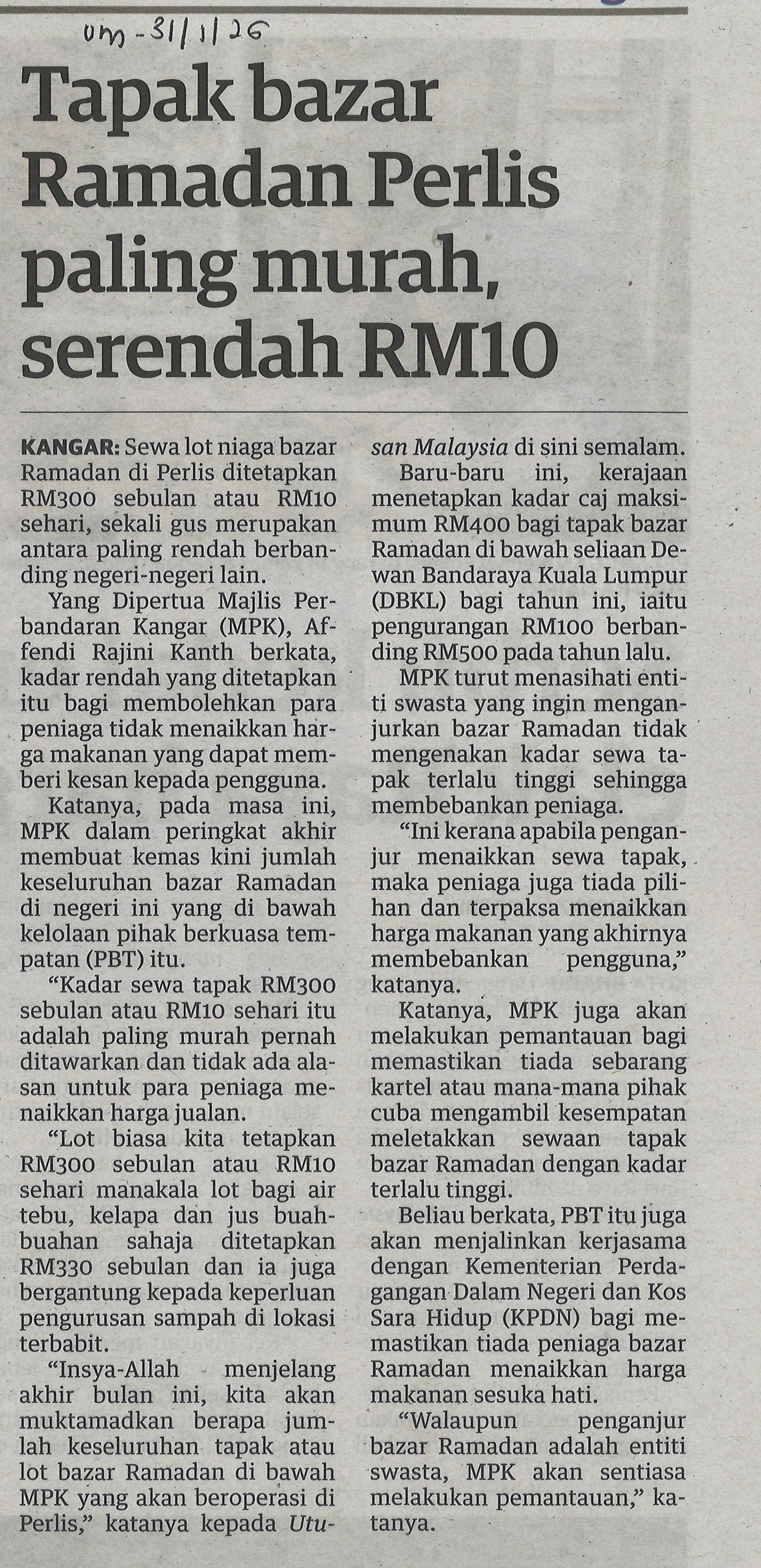 Tapak bazar ramadhan Perlis paling murah