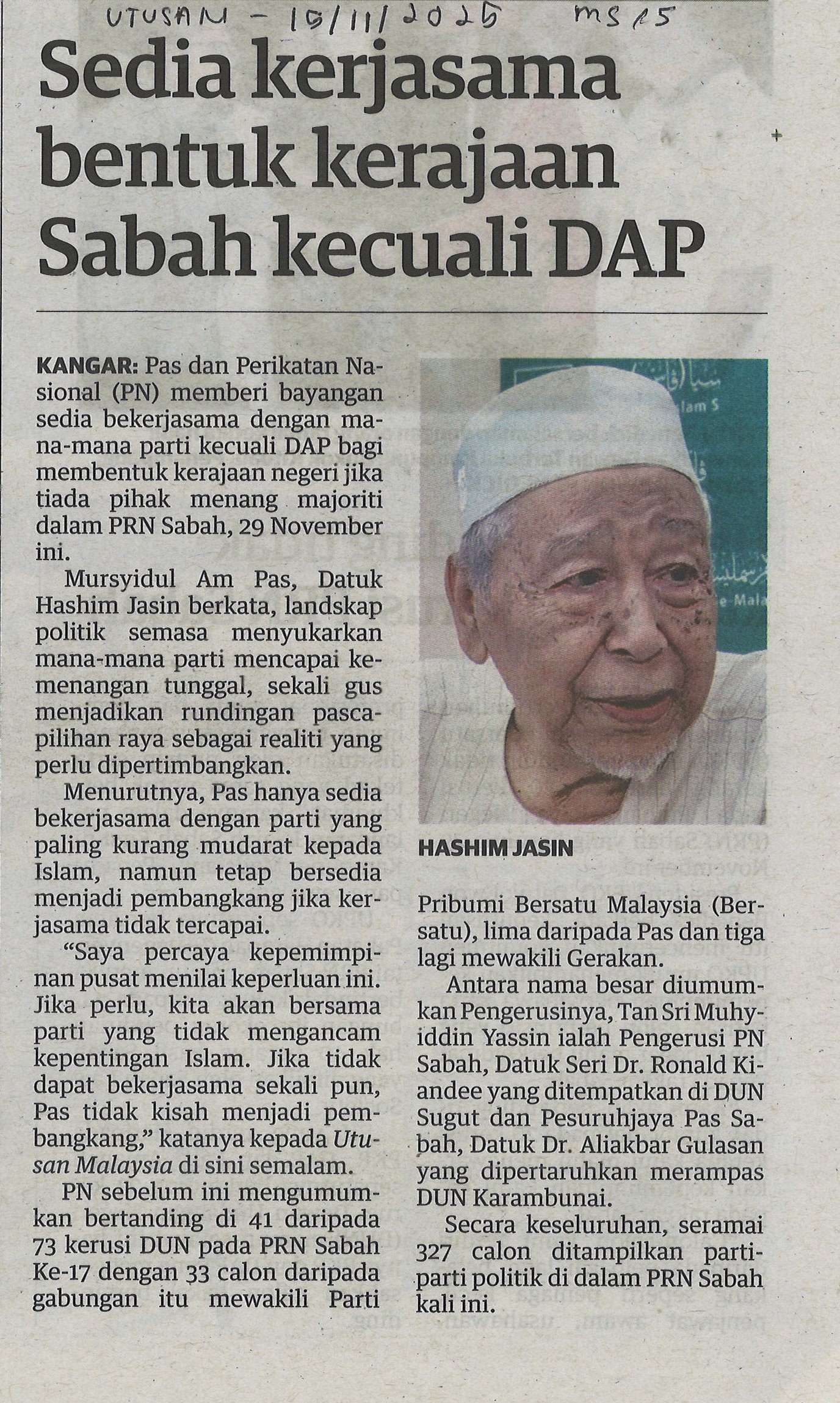 Sedia kejasama bentuk kerajaan sabah kecuali DAP