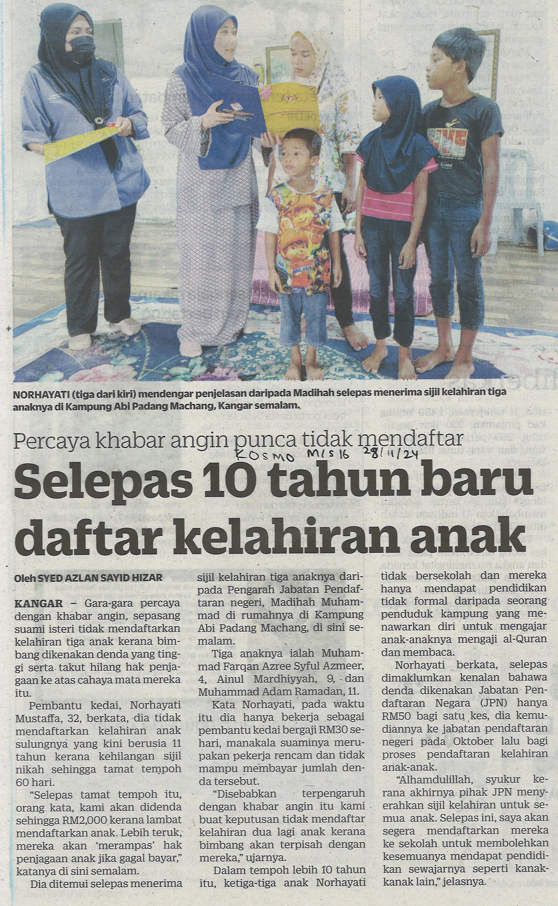 Selepas 10 tahun baru daftar kelahiran anak