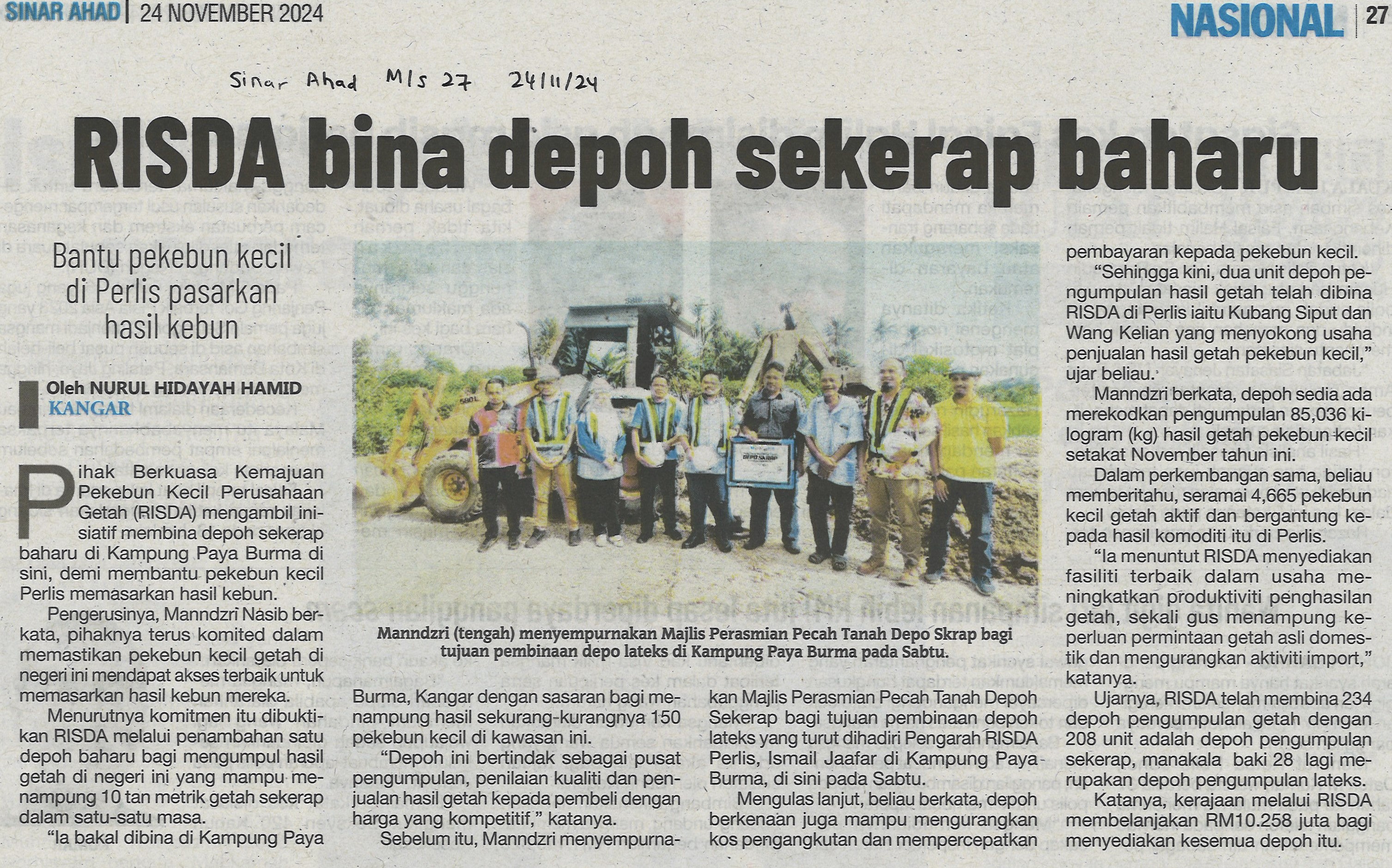 RISDA bina depoh sekerap baharu