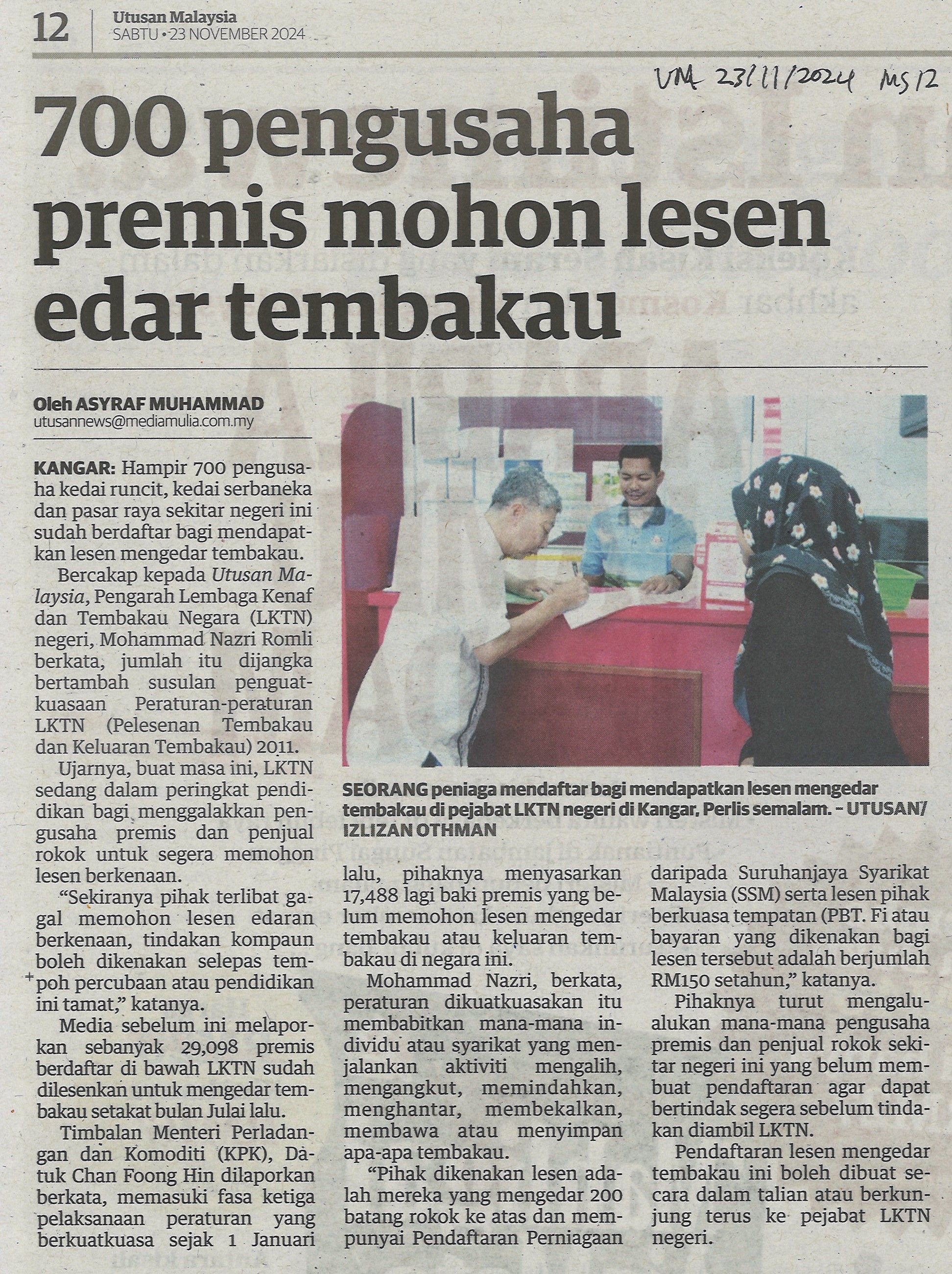 700 pengusaha premis mohon lesen edar tembakau
