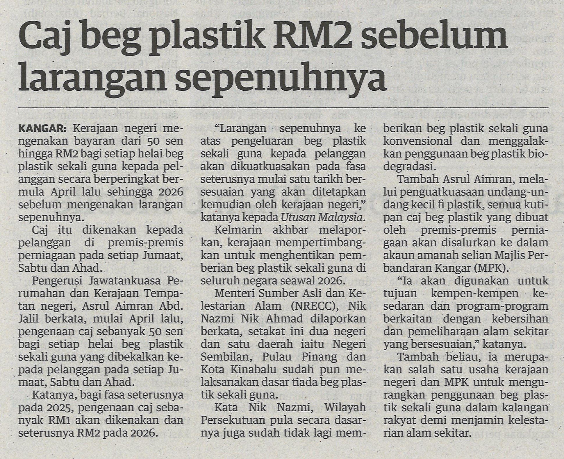 Caj beg plastik RM2 sebelum larangan sepenuhnya
