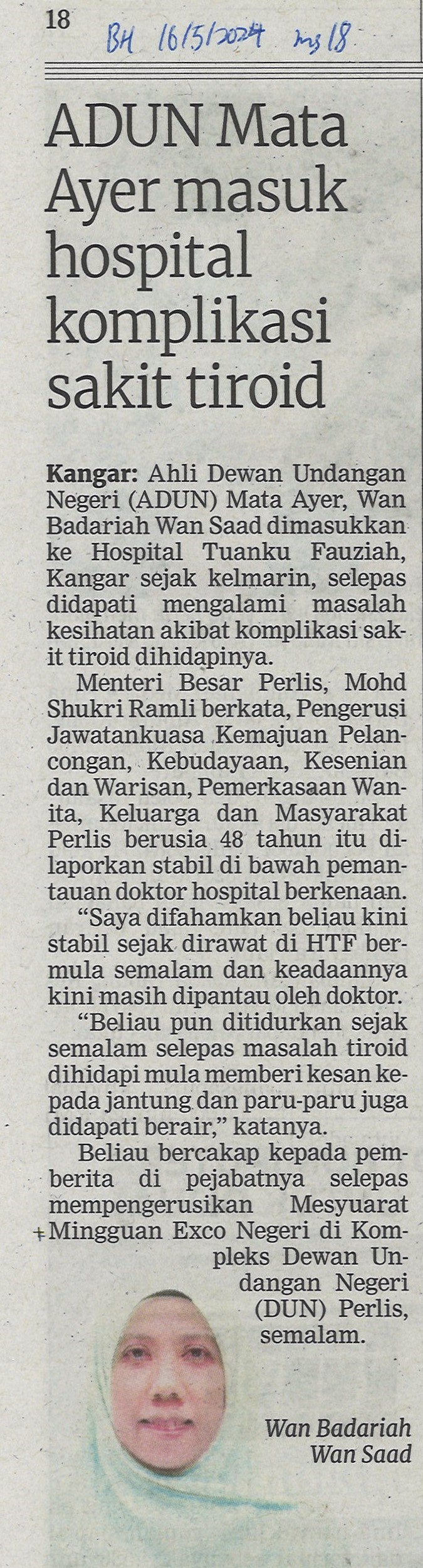 ADUN Mata Ayer masuk hospital komplikasi sakit tiroid
