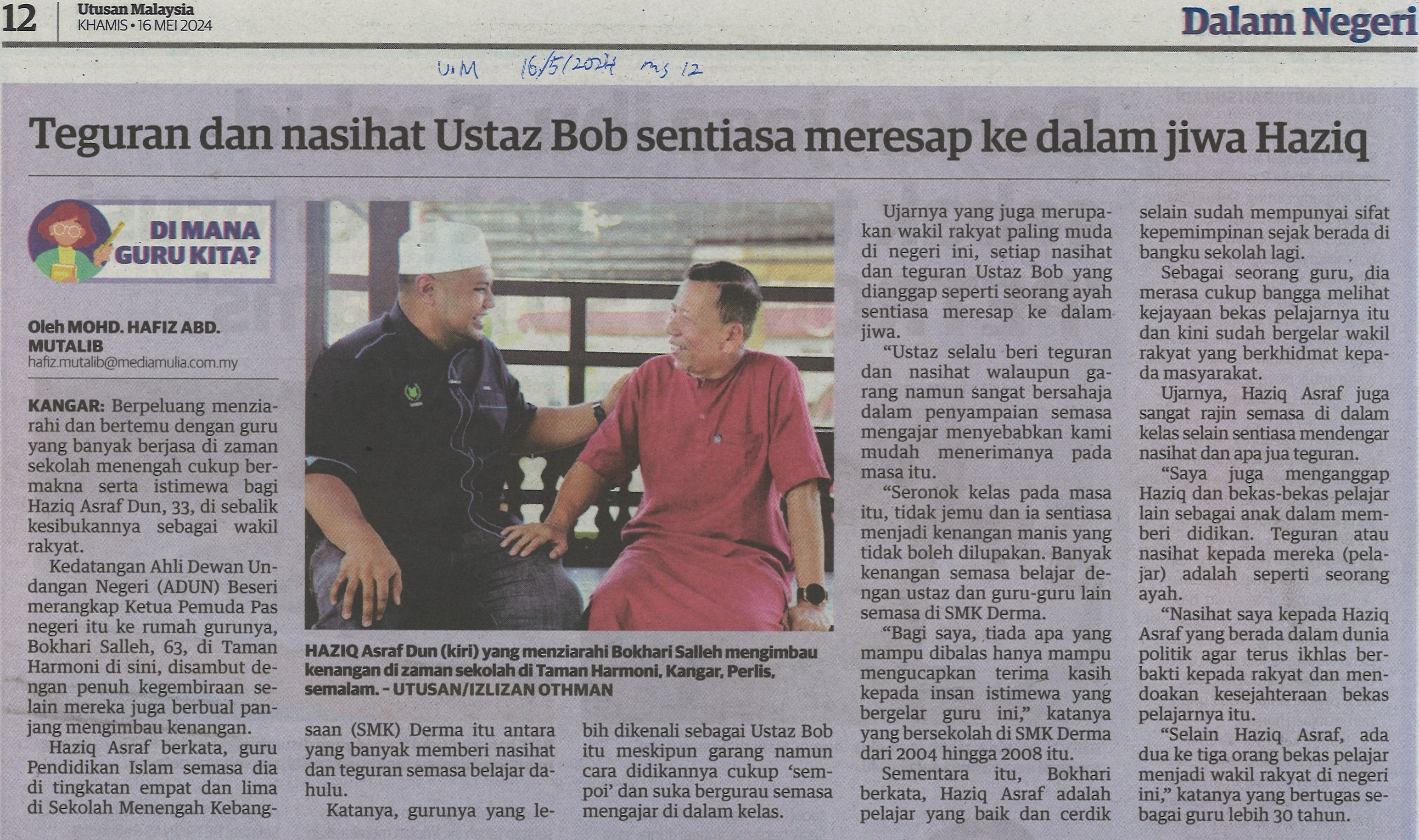 Teguran dan nasihat Ustaz Bob sentiasa meresap ke dalam jiwa Haziq