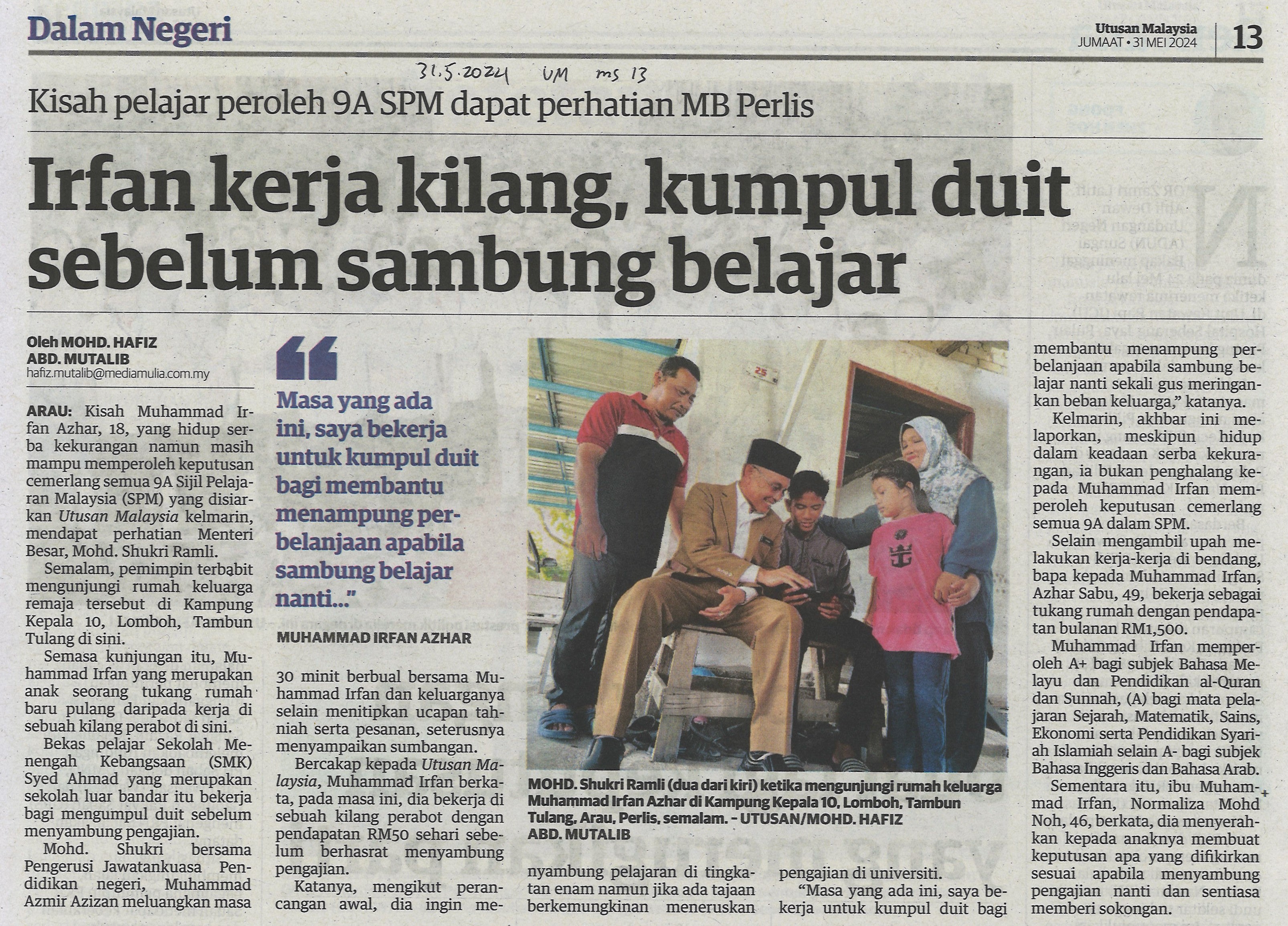 Irfan kerja kilang, kumpul duit sebelum sambung belajar