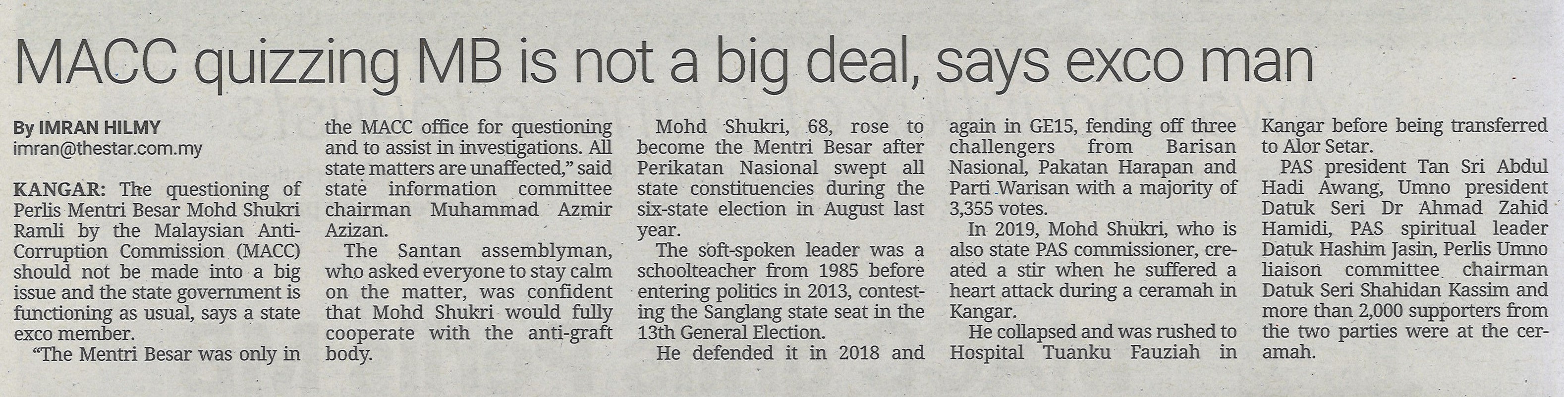 MACC quizzing MB is not a big deal, says exco man