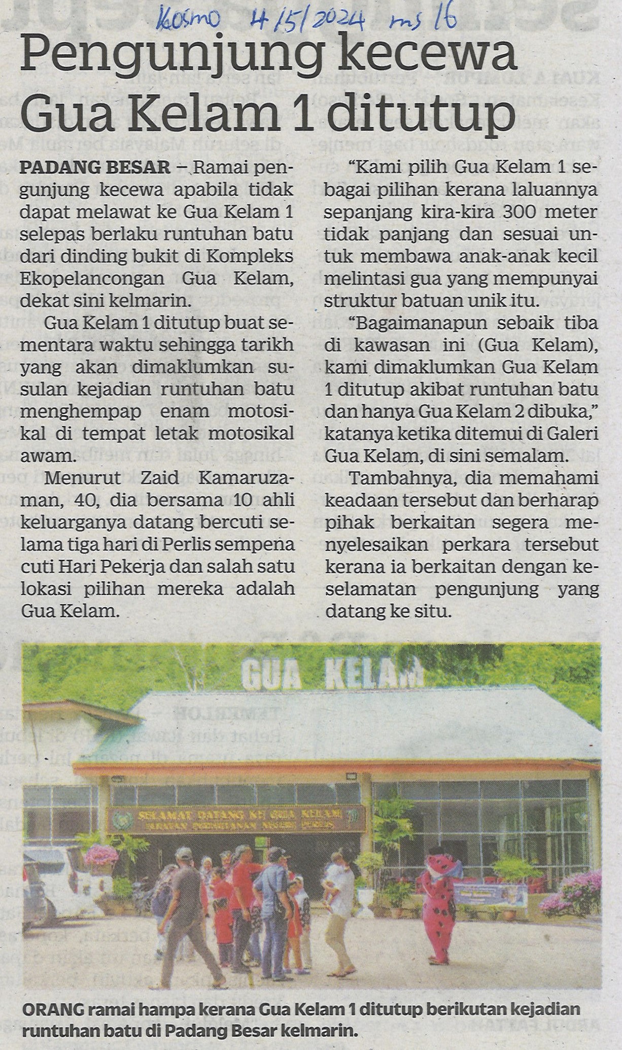 Pengunjung kecewa Gua Kelam 1 ditutup