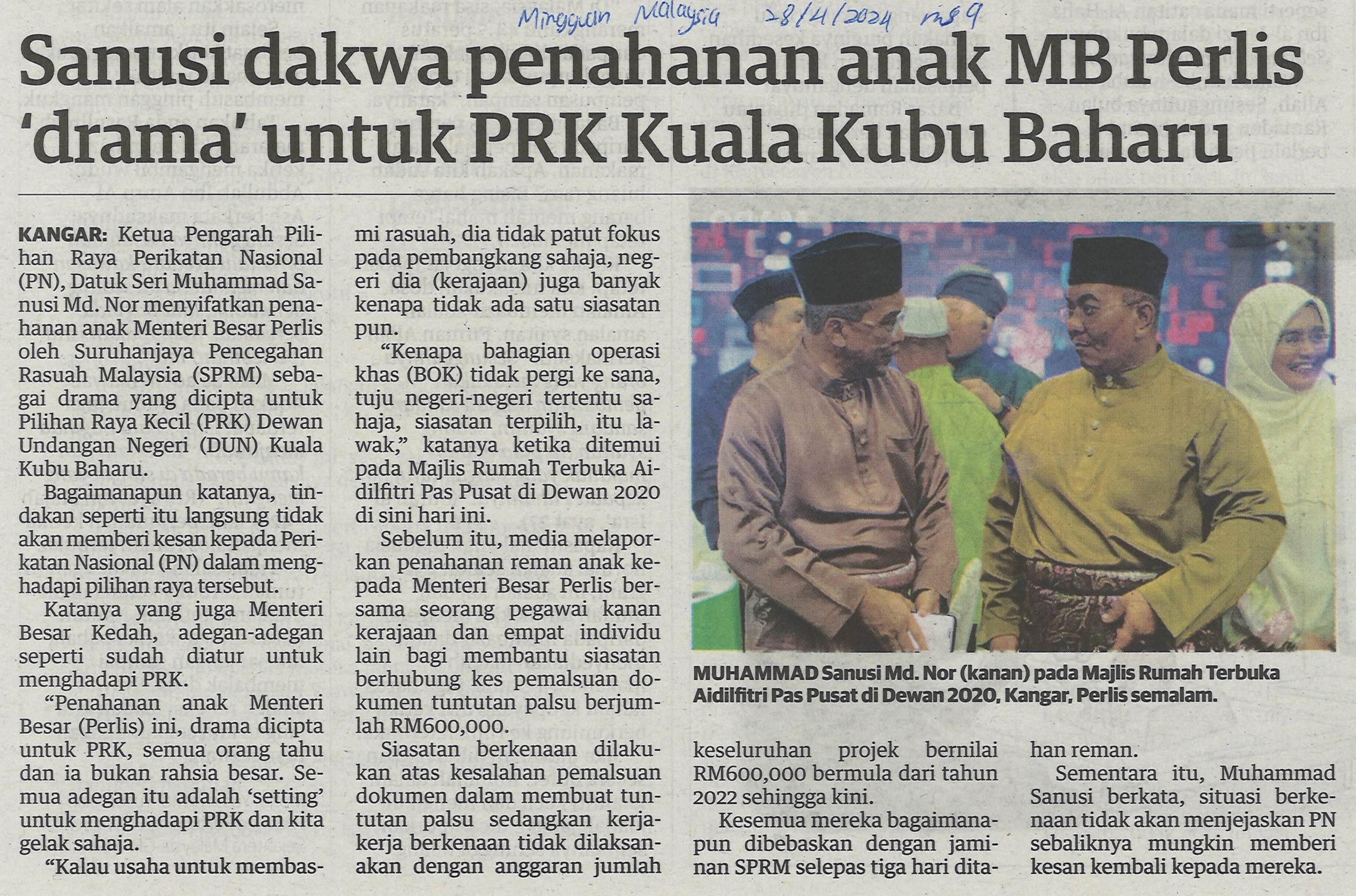 Sanusi dakwa penahanan anak MB Perlis 'drama' untuk PRK Kuala Kubu Baharu