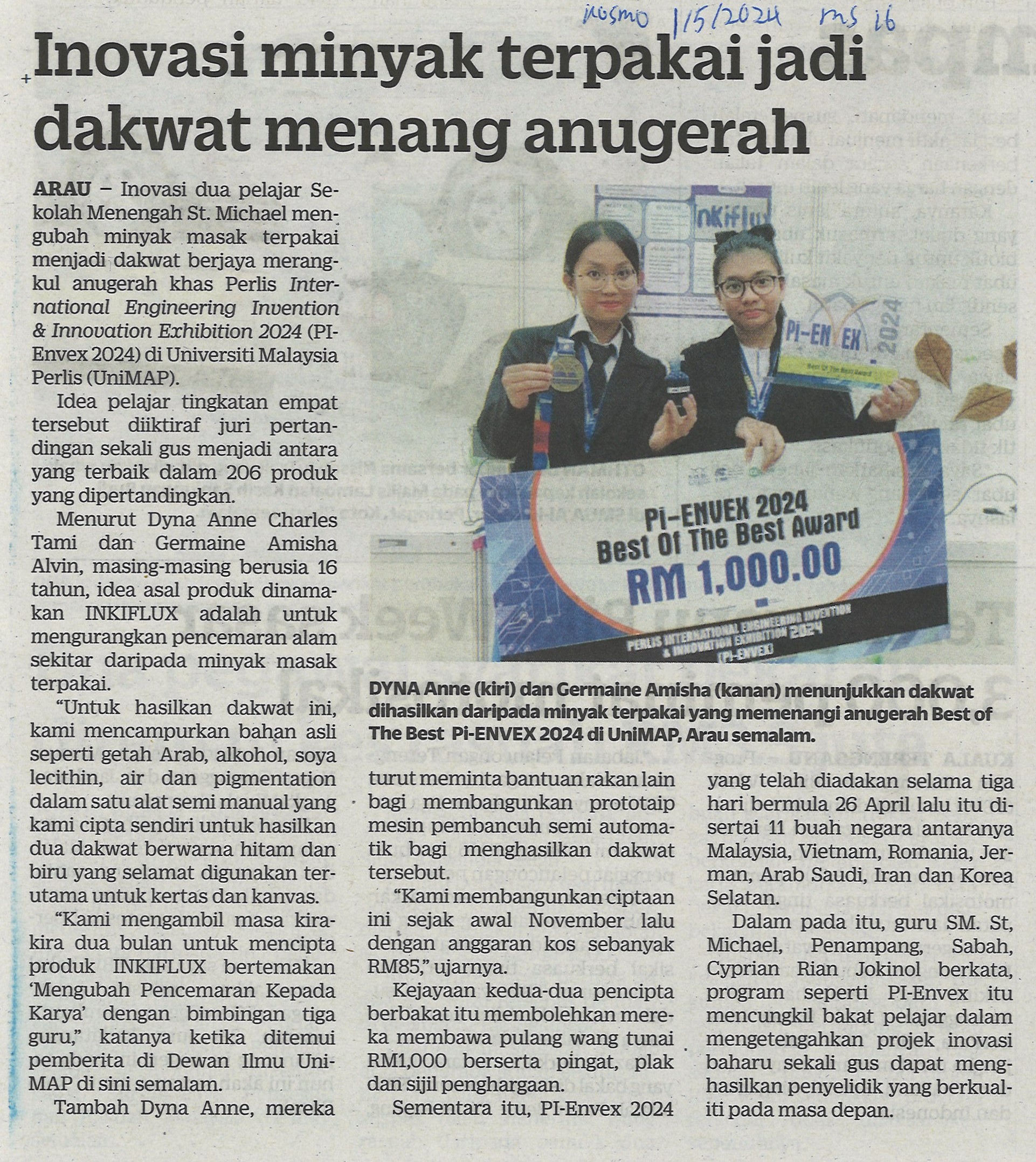 Inovasi minyak terpakai jadi dakwat menang anugerah